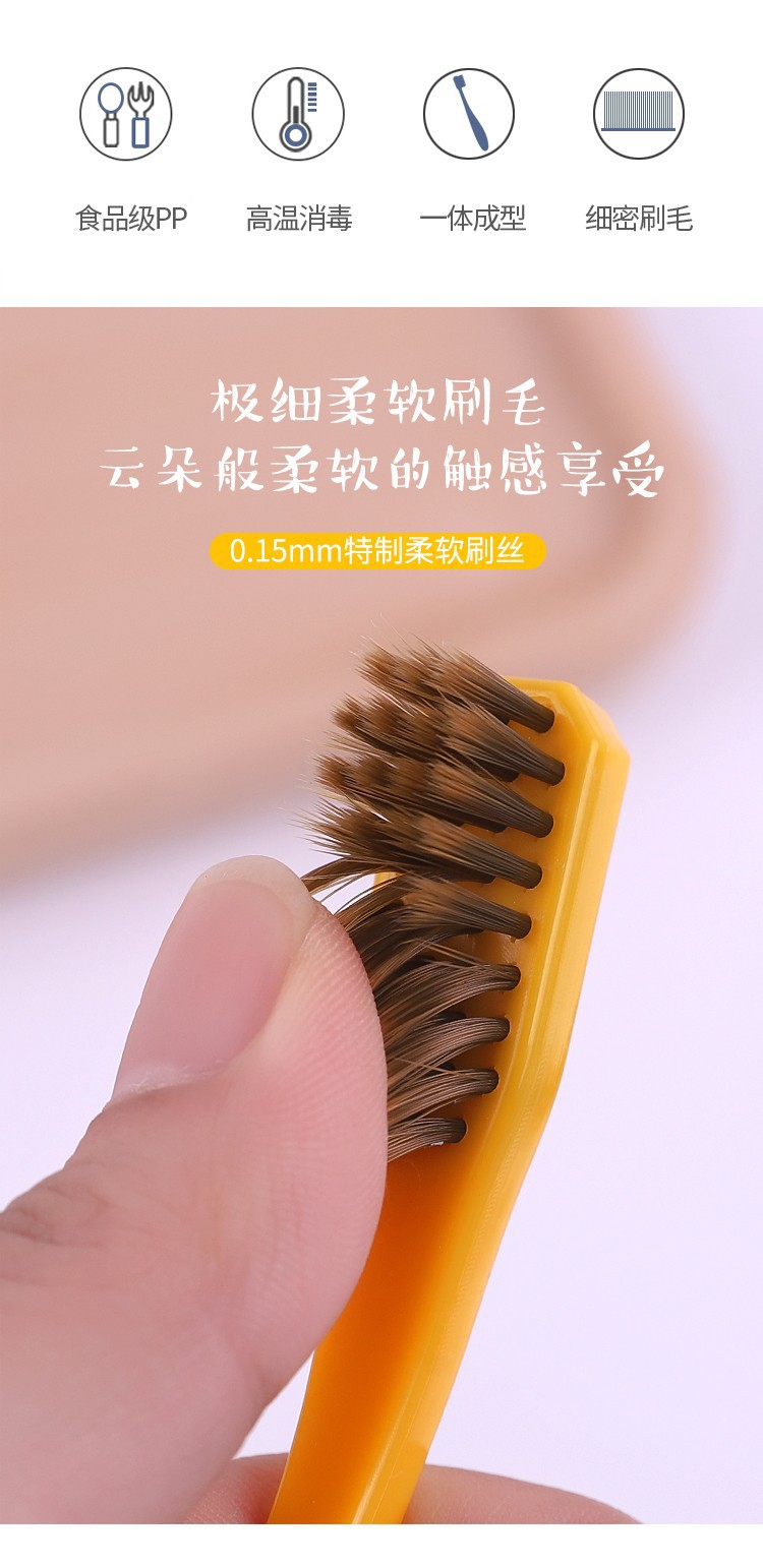 Superfine super soft toothbrush Size: 18.5*1.5*1.6CM Material: ABS high-gloss handle + PBT fiber wool Packing: OPP tube Gram weight: 15.3g