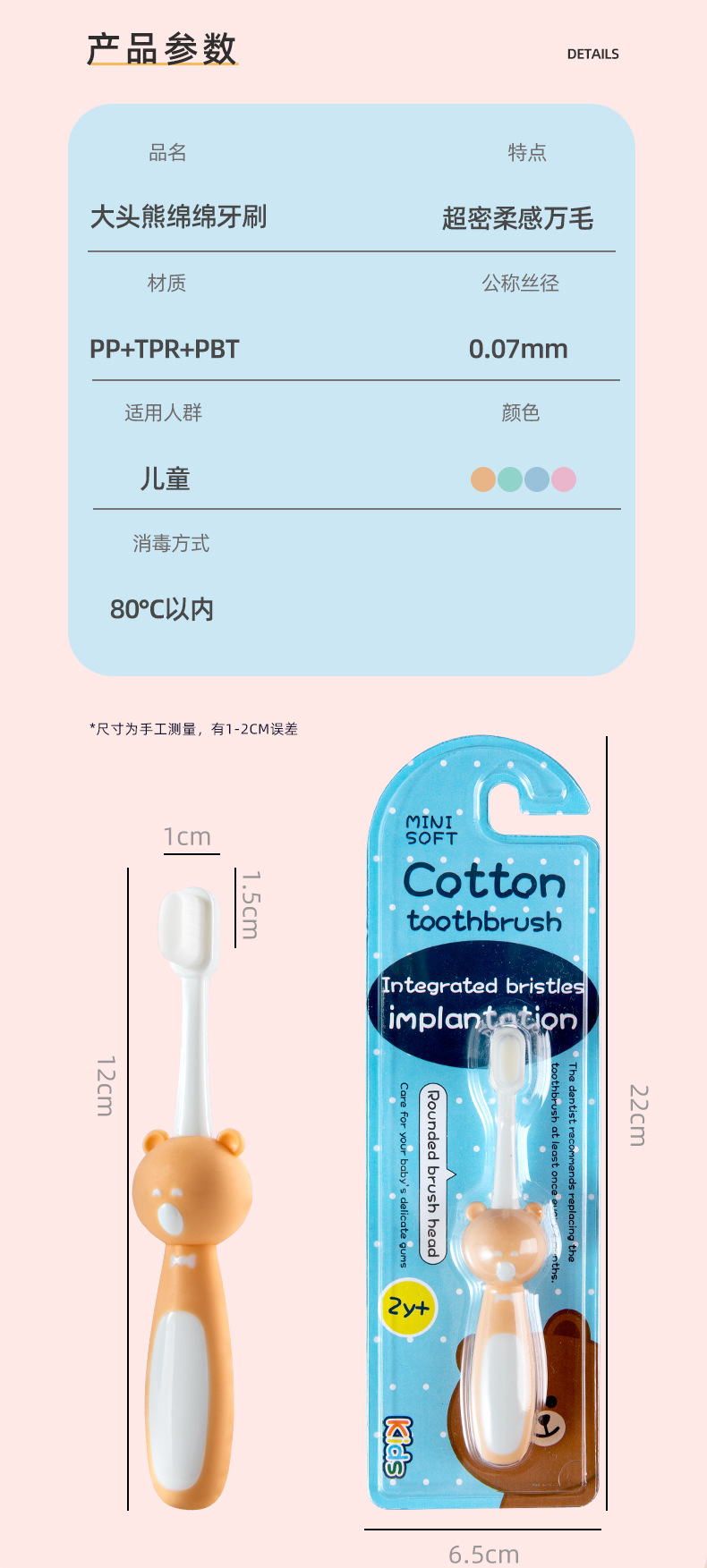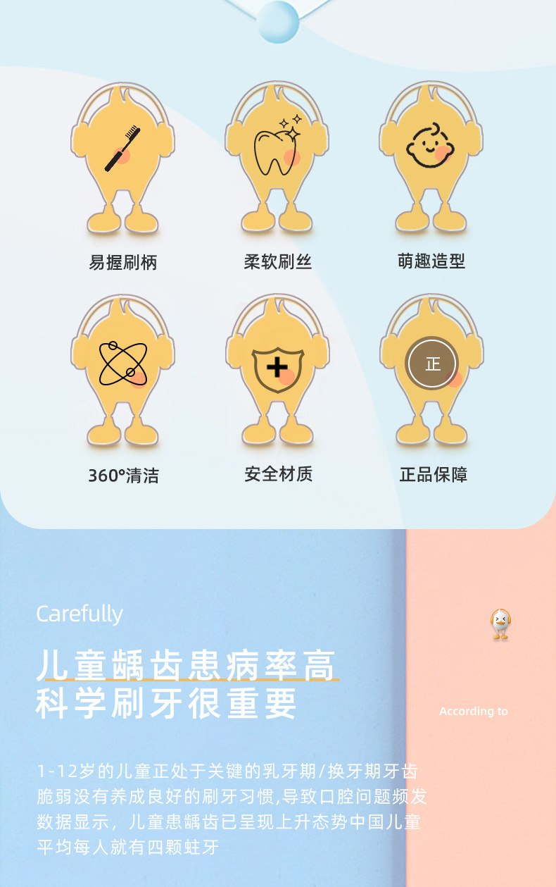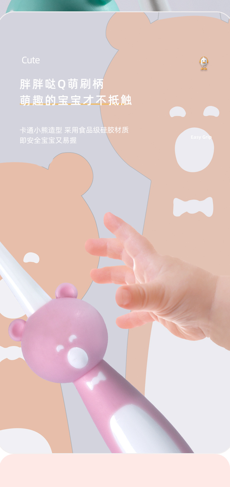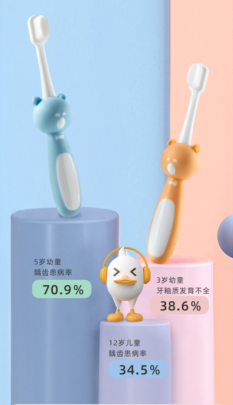 Cartoon bear children’s toothbrush ten thousand soft bristles toddler cute baby toothbrush