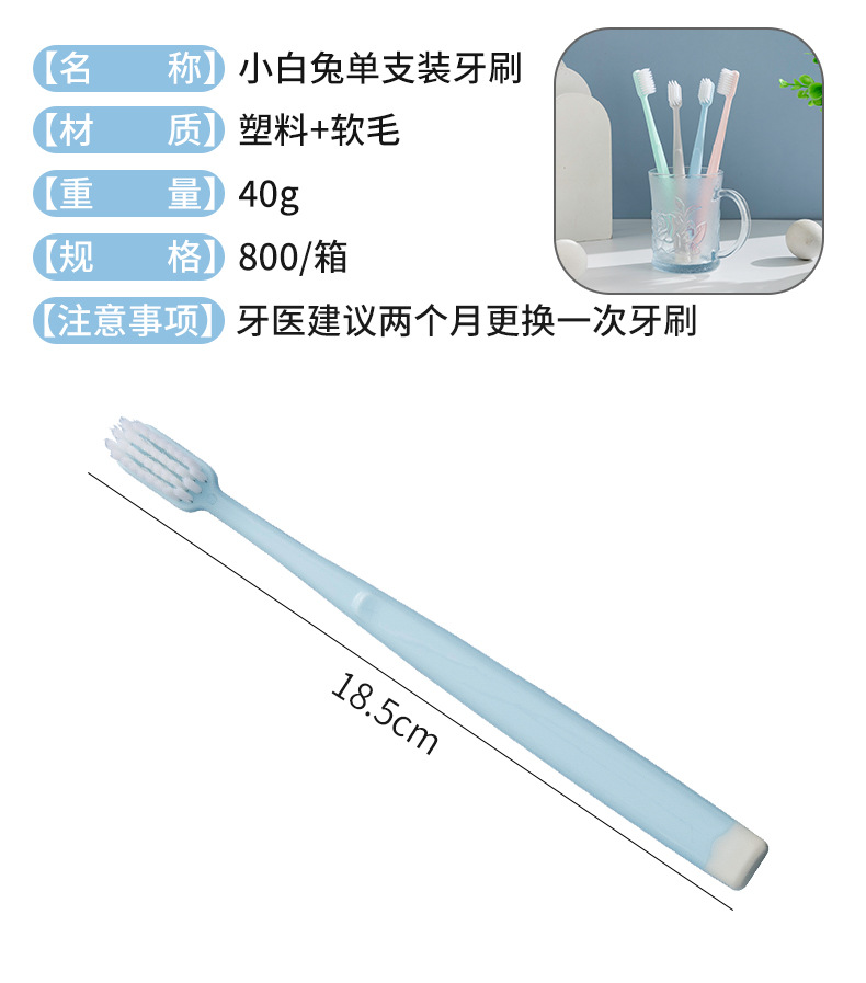 Superfine super soft toothbrush Size: 18.5*1.5*1.6CM Material: ABS high-gloss handle + PBT fiber wool Packing: OPP tube Gram weight: 15.3g