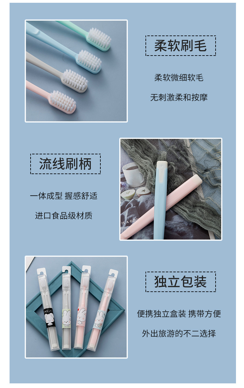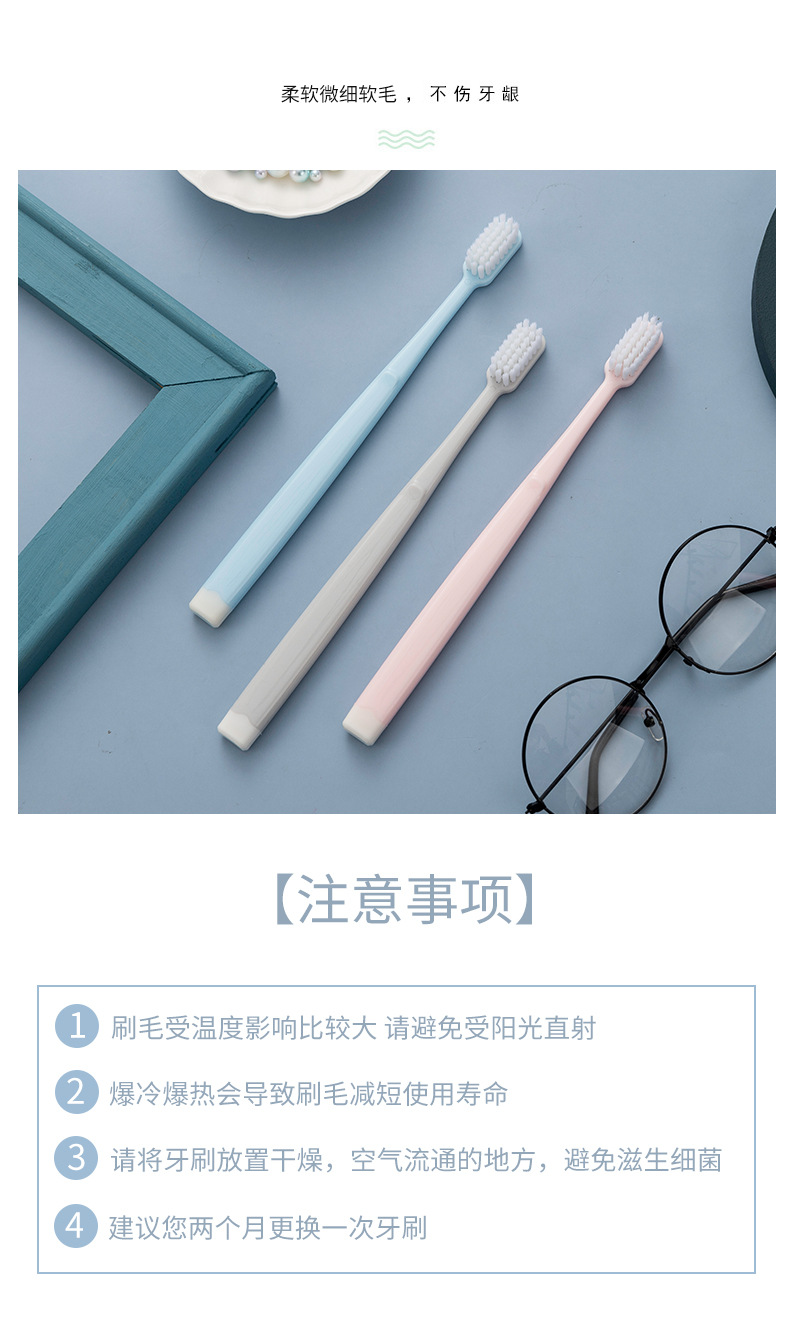 Small head toothbrush with fine bristles Size: 18.5*2.5*1.0CM Material: environmental protection PP Packing: boxed Color: white, khaki, gray, black, pink, sky blue