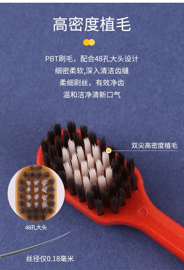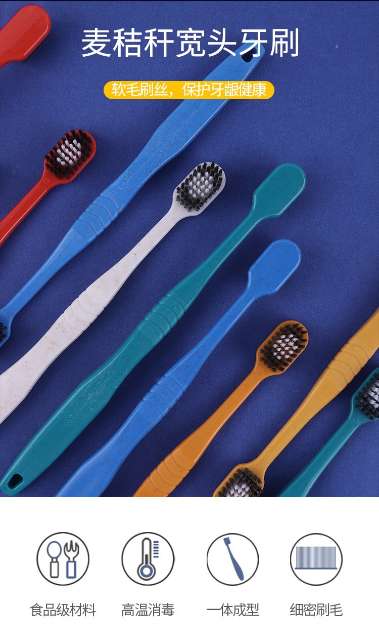 4 wide-head soft bristles toothbrushes Size: 18.5cm Material: PP Packing: Blister cardboard Color: black, red, white, blue