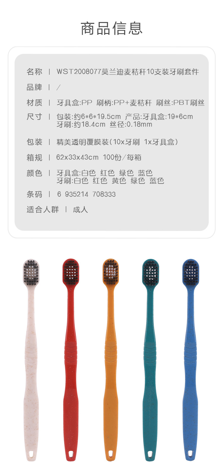 10 adult macaron soft toothbrushes Size: 18.4CM Material: soft wool PBT/PP/TPR Packing: boxed Color: mixed color Box gauge: 62*33*43CM QTY: 100PCS