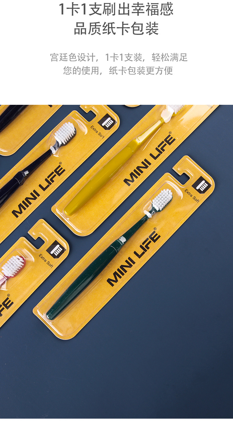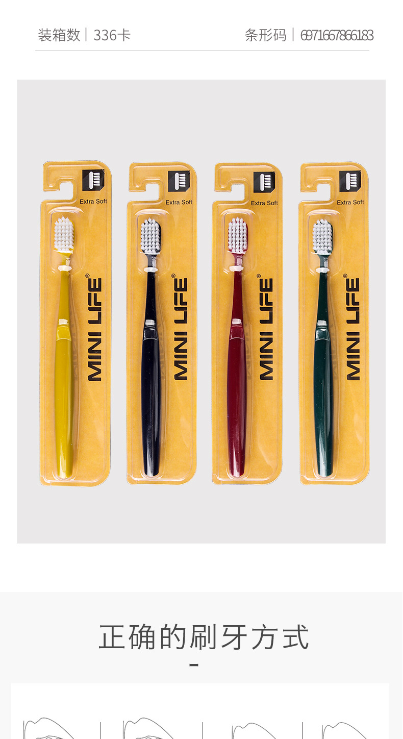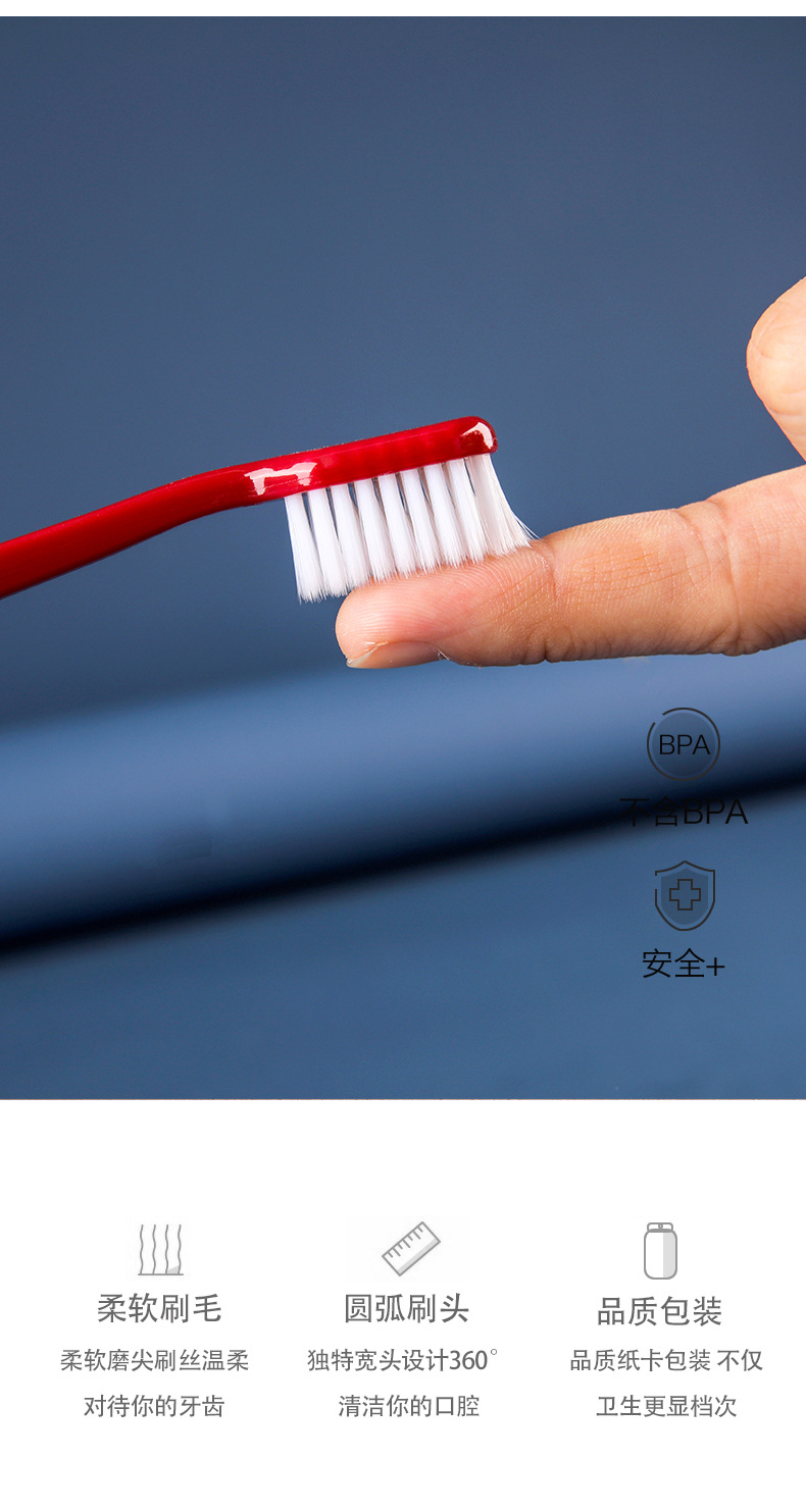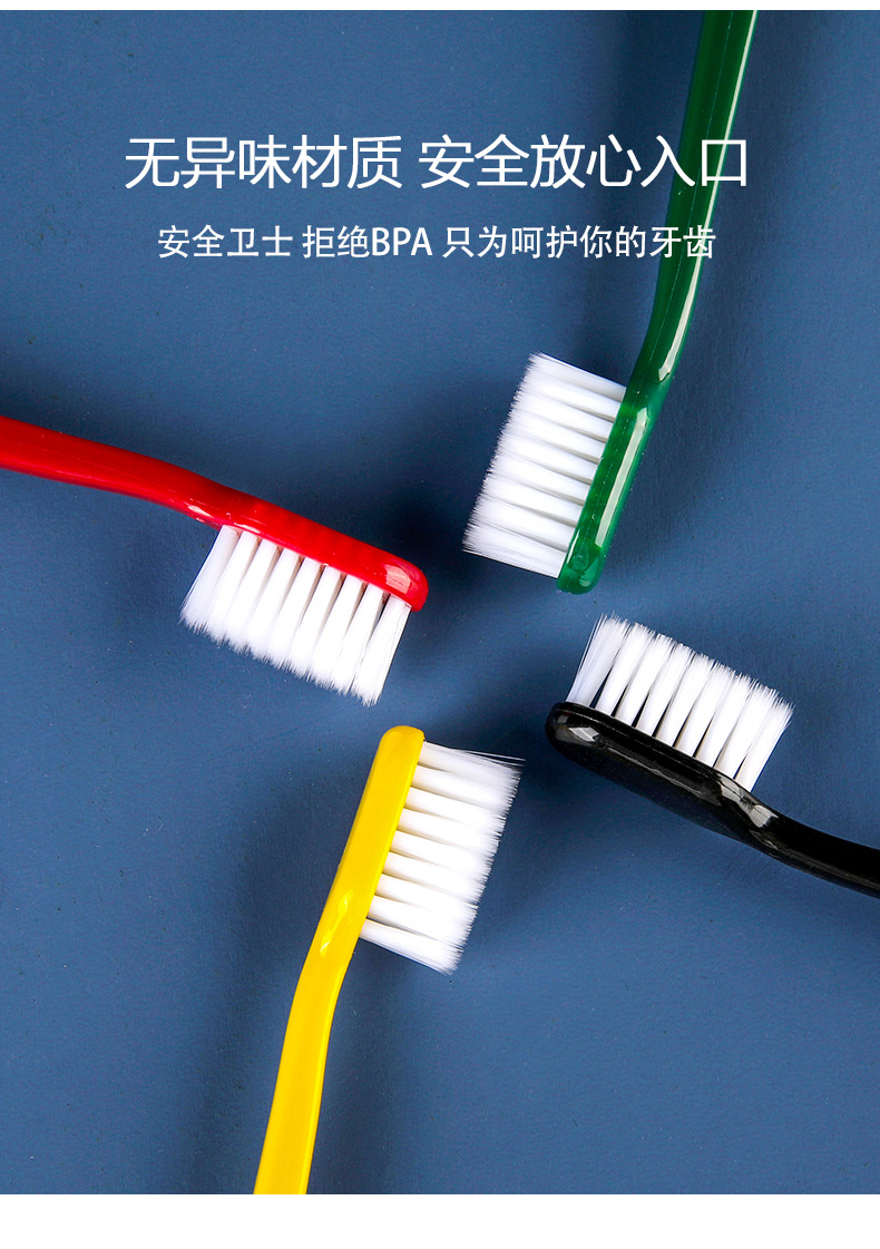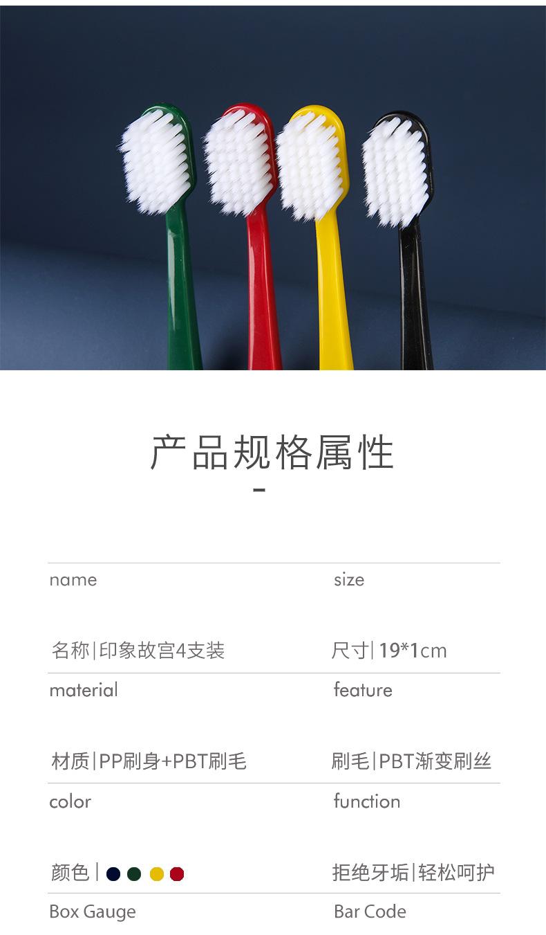 4 packs of soft-bristled small-end toothbrushes Size: 18CM Material: pp Packing: crystal box Color: mixed color