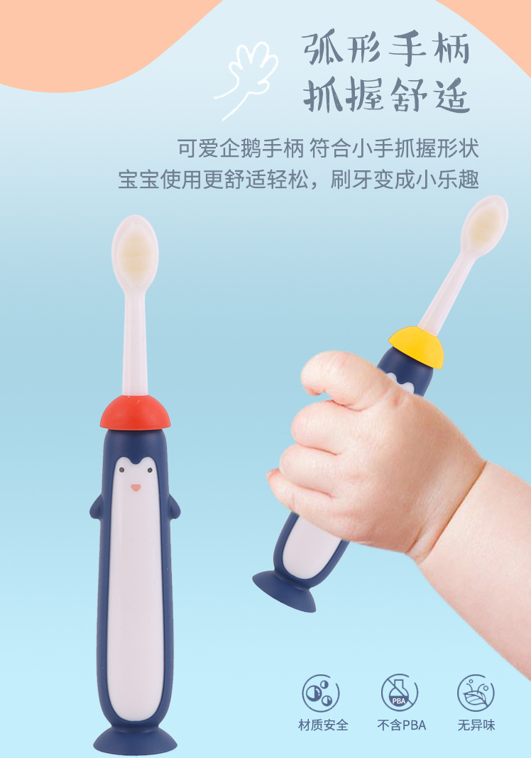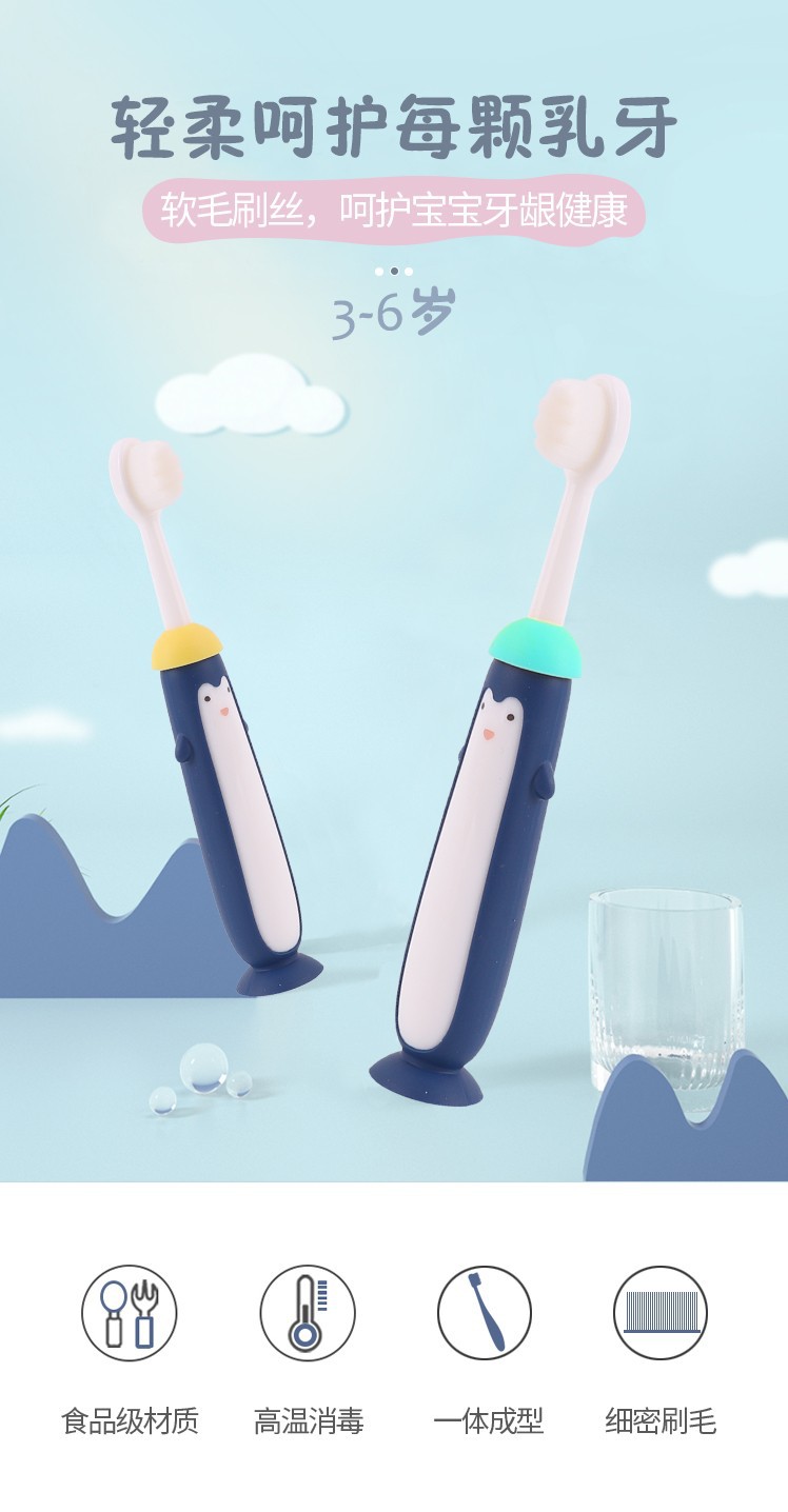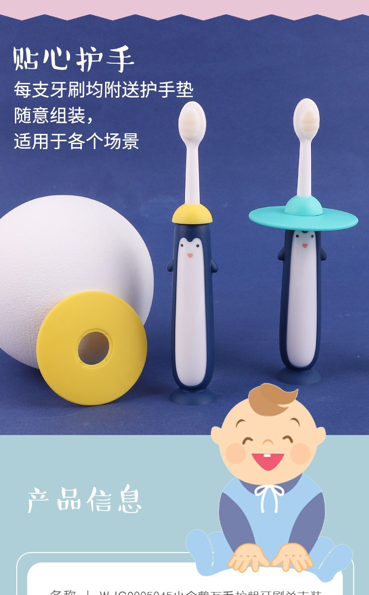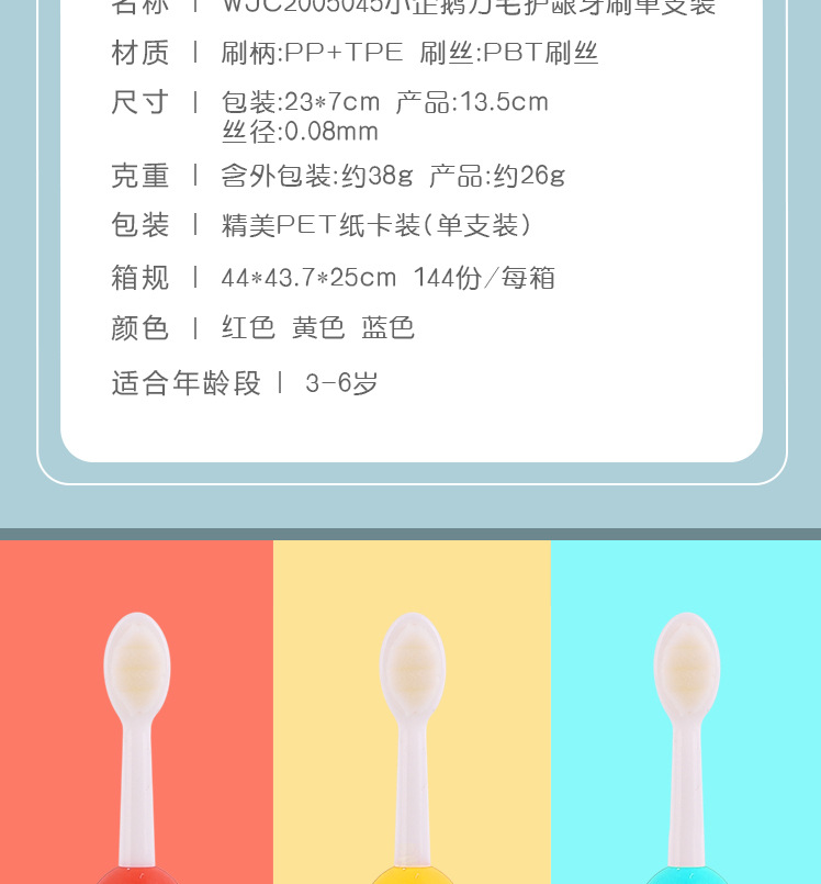 Little Penguin Wanma Oral Care Toothbrush Size: 13.5CM Material: soft wool PBT/PP/TPR Packing: cardboard Color: mixed color Box gauge: 44*43.7*25CM QTY:144PCS