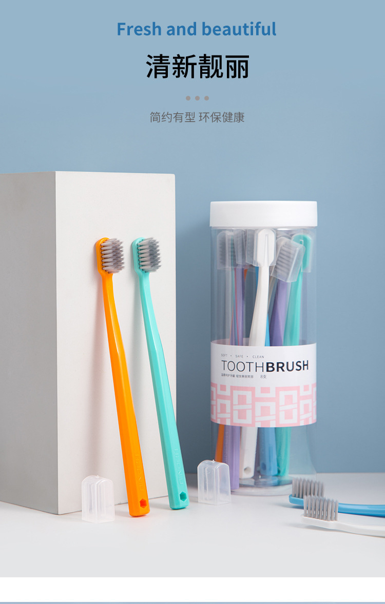 Adult wide-head soft toothbrush Size: 19*1CM Material: PP+PBT bristles Packing: Blister cardboard Color: mixed color