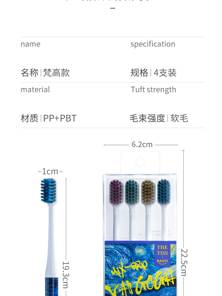 Gaoxingkong Adult Toothbrush 4pcs Size: 19.3*1CM Material: PP/PBT Packing: PVC box Color: picture color
