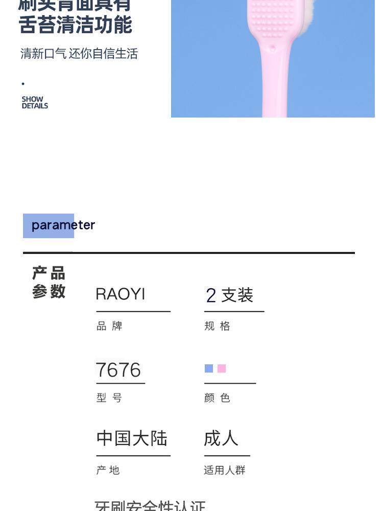 Two toothbrushes for couples Size: 18.5CM Material: PP/soft wool Packing: PVC box Color: mixed color