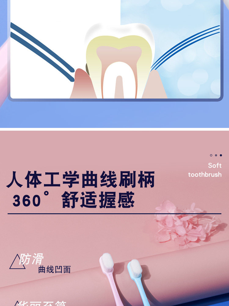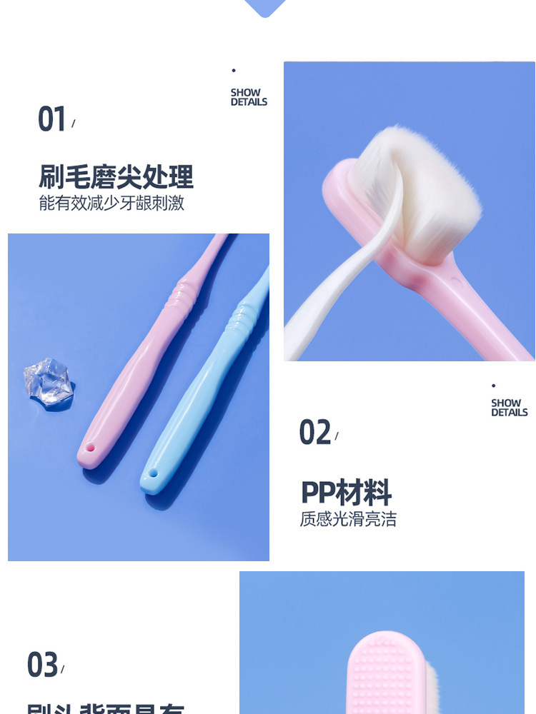 Macaron Toothbrush Nano 3pcs Size: 18*1.2CM Material: pp +TPU Packing: PVC box Box gauge: 22*50*23CM QTY: 288PCS