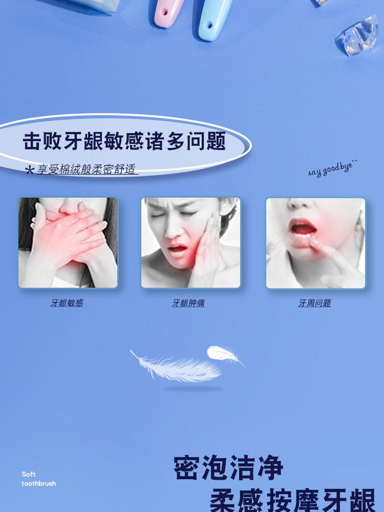 Soft toothbrush set of 4 Size: 15*5*20CM Material: PP+PBT Packing: Blister cardboard Color: mixed color