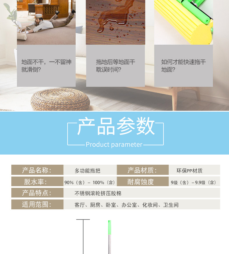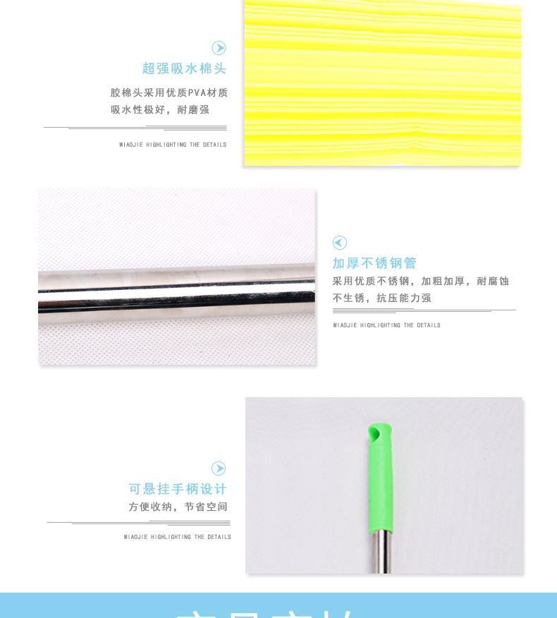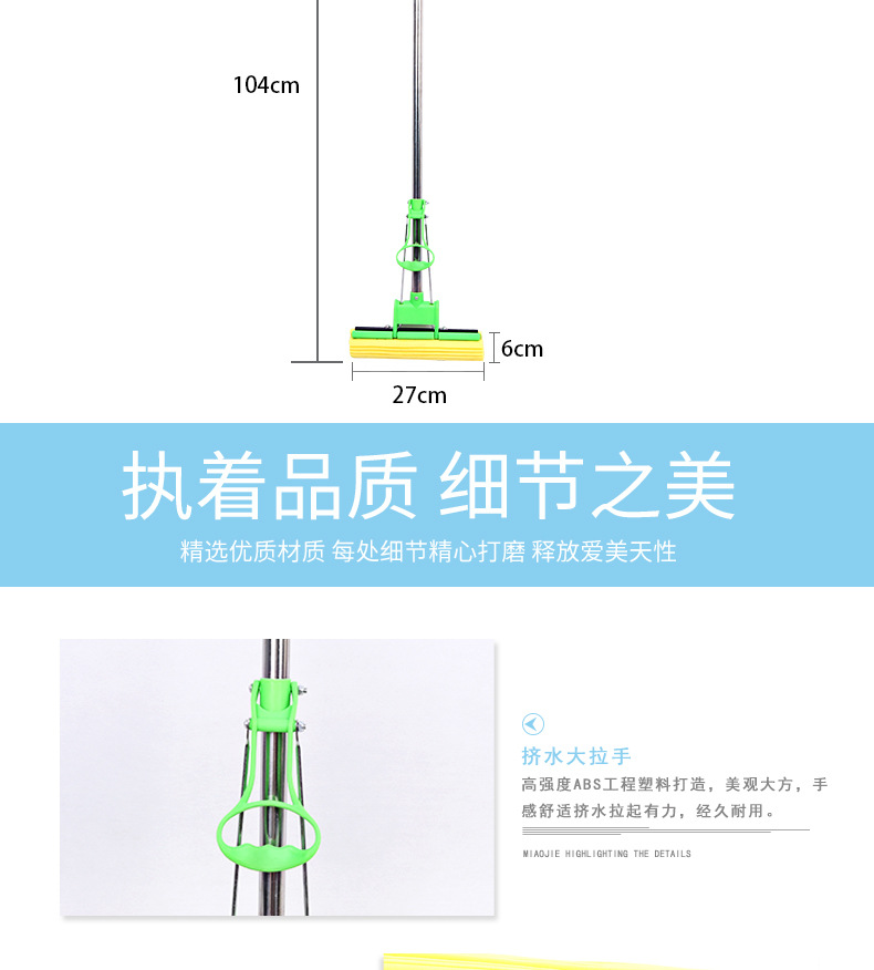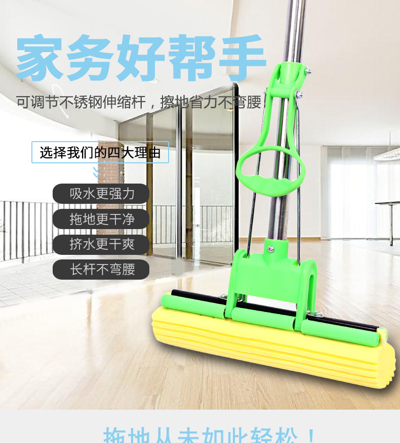 absorbent sponge mop Material: sponge + stainless steel + plastic Size: 105*28cm