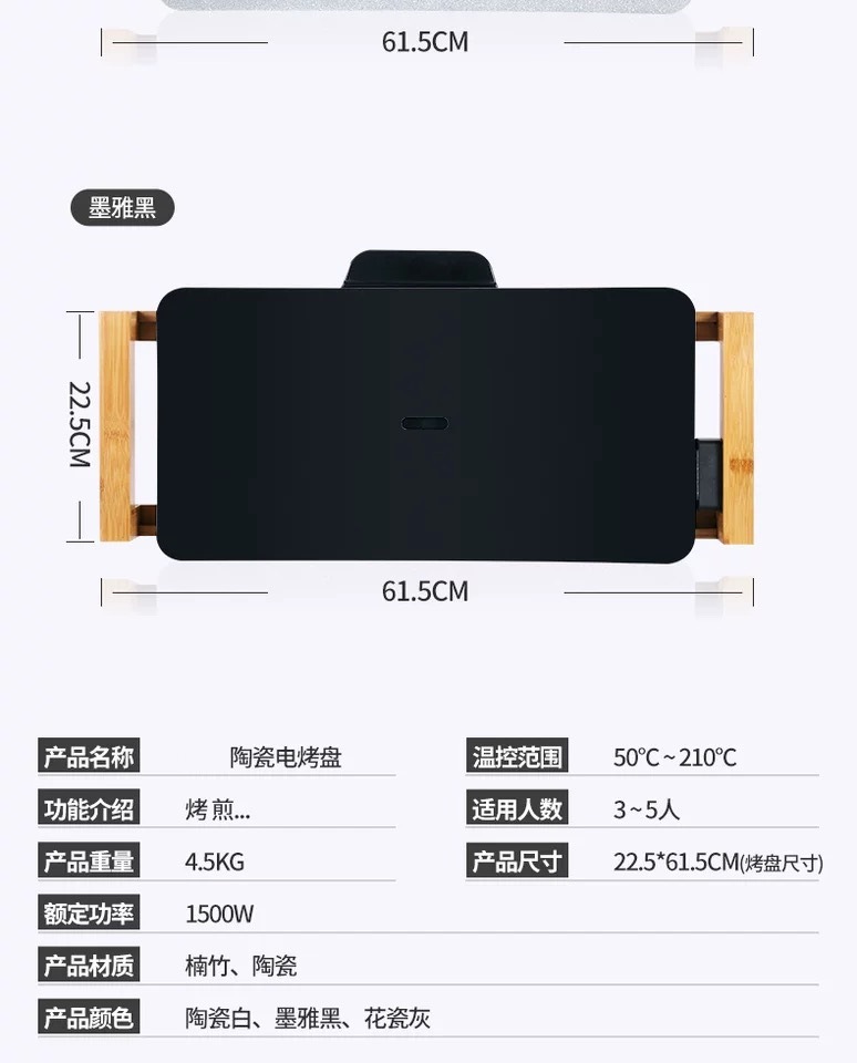 Korean Smokeless Barbecue Plate Size: 62.5*30CM Material: inner pure aluminum + outer ceramic Power: 2100v Packaging cartons