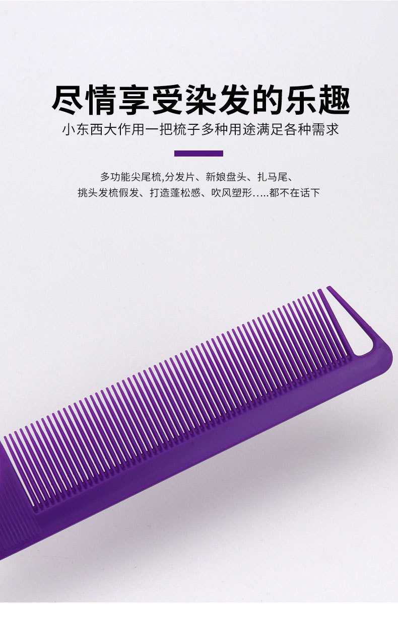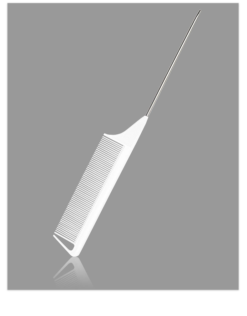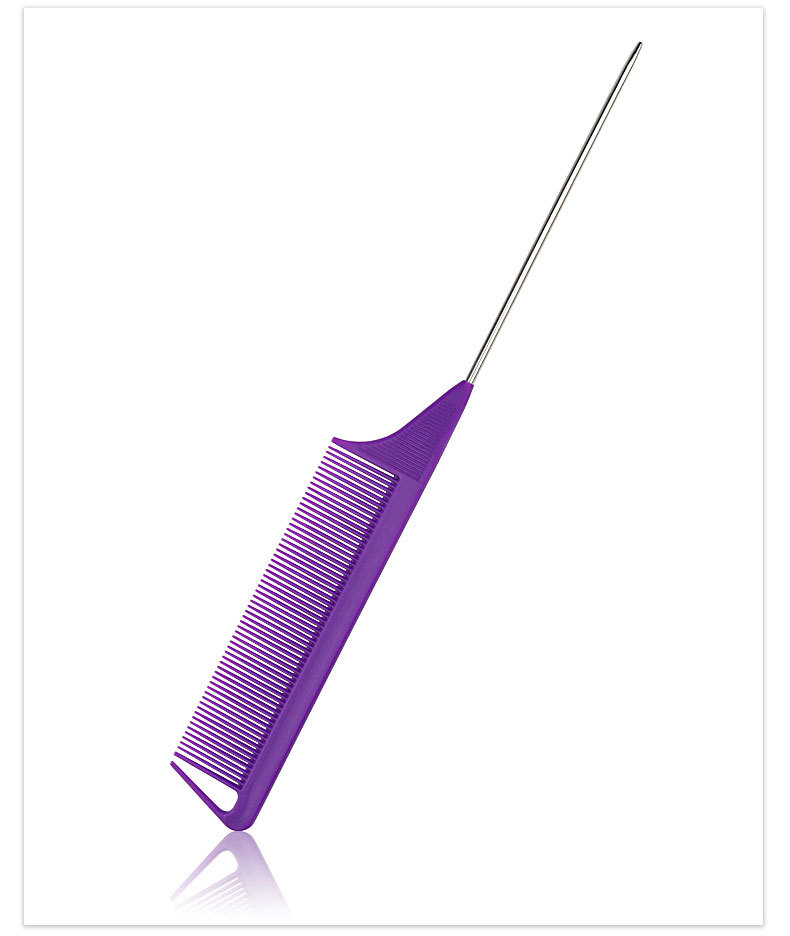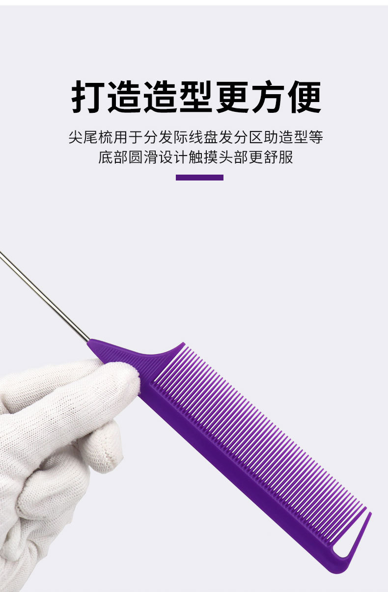 Colored steel tip tail comb Size: 22*2.8CM Material: PP Packing: OPP bag Color: mixed color Box gauge: 54*29*37CM QTY: 1200PCS