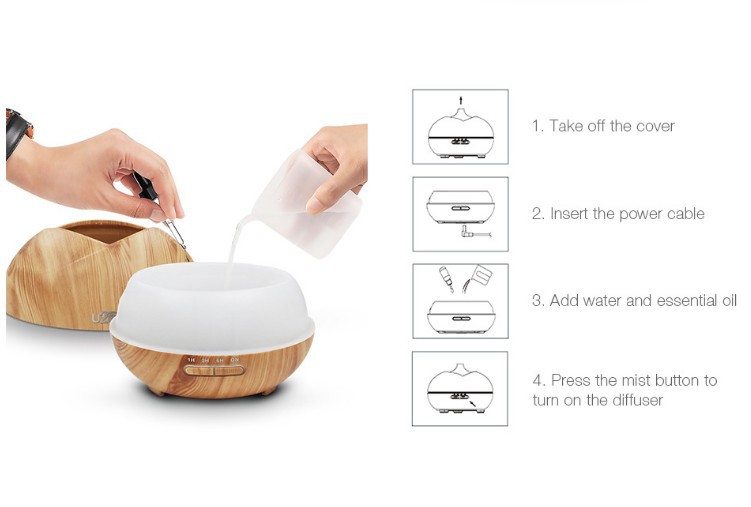 Triangular wood grain humidifier aroma diffuser Size: 166*122mm Material: PP Packing boxes Water tank capacity: 300ml Input/output: DC24V Power: about 14W Carton size: 58*40*25cm QTY: 12PCS