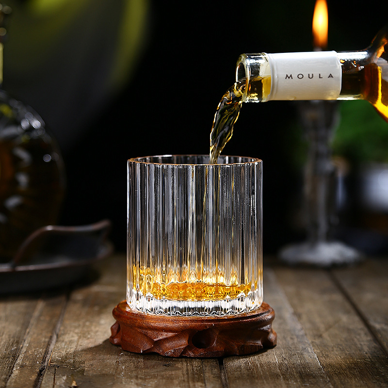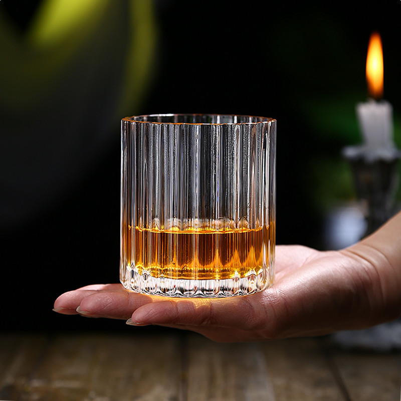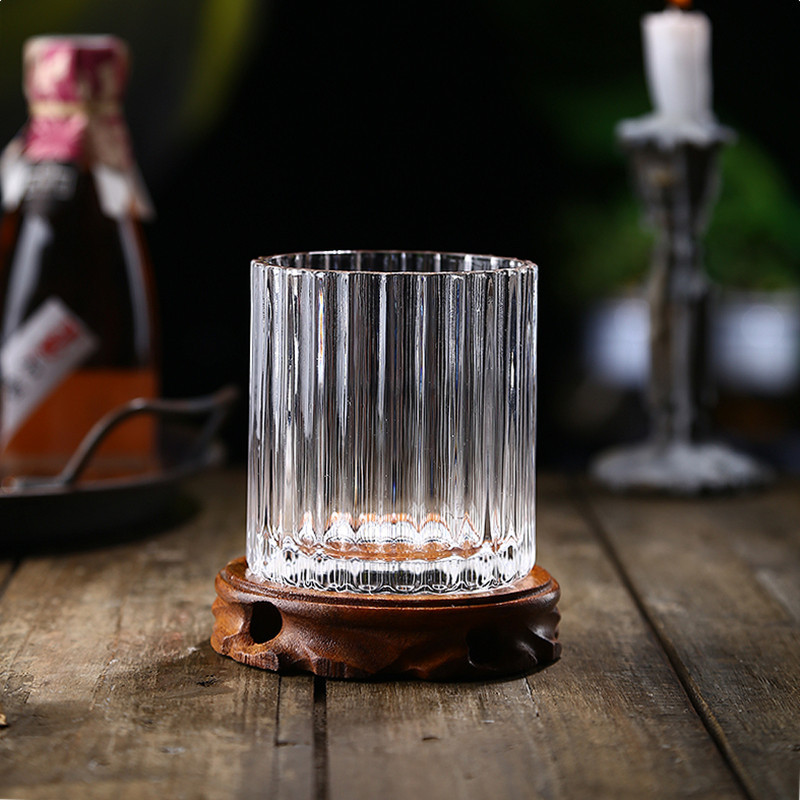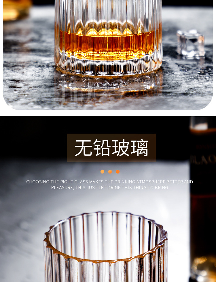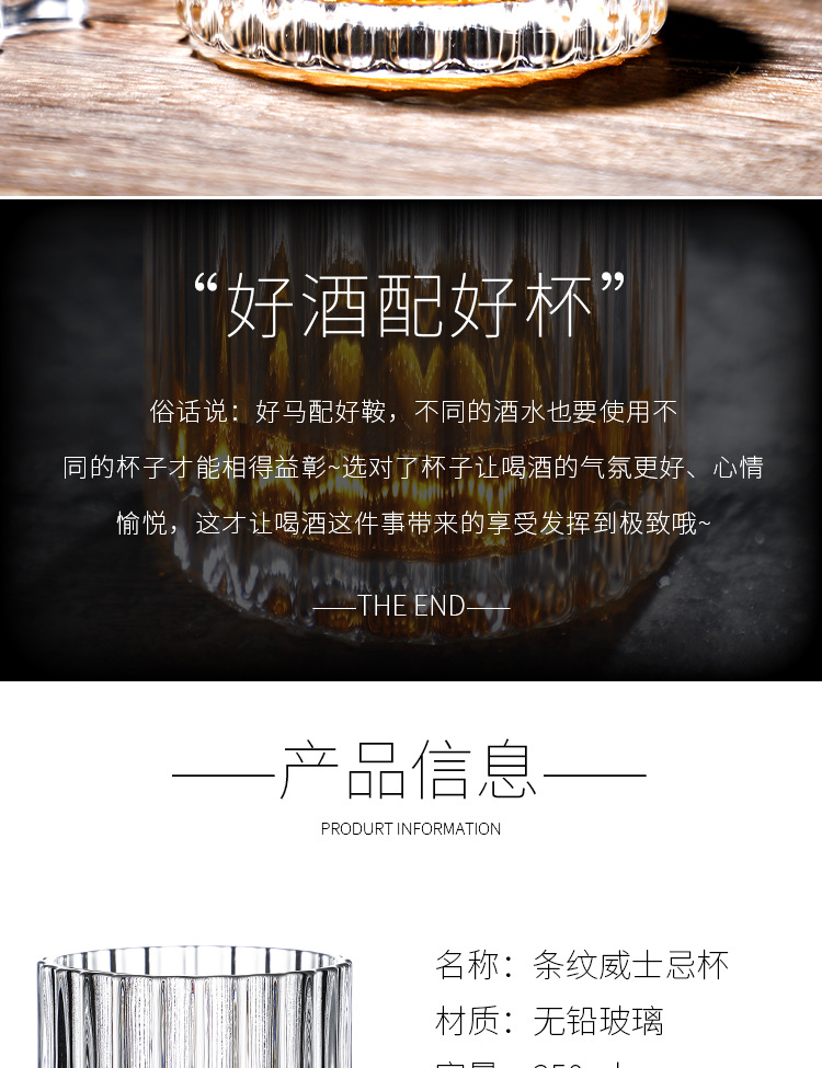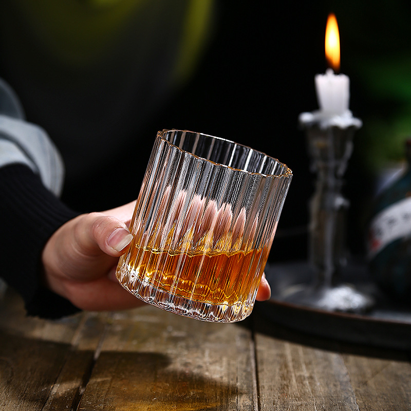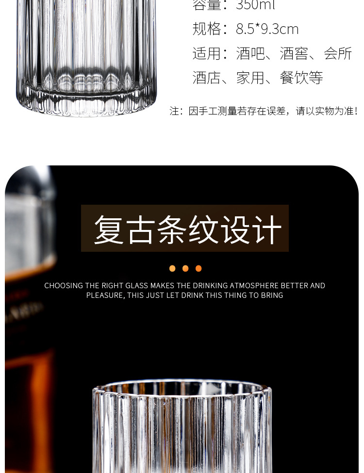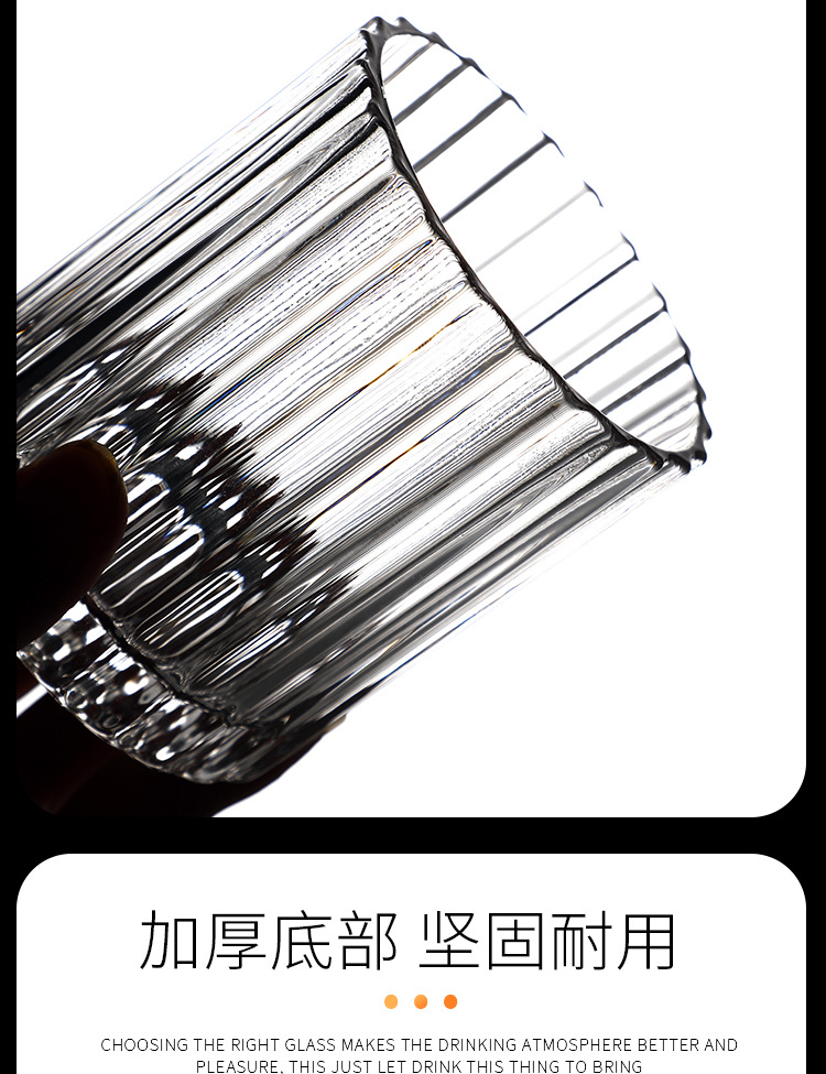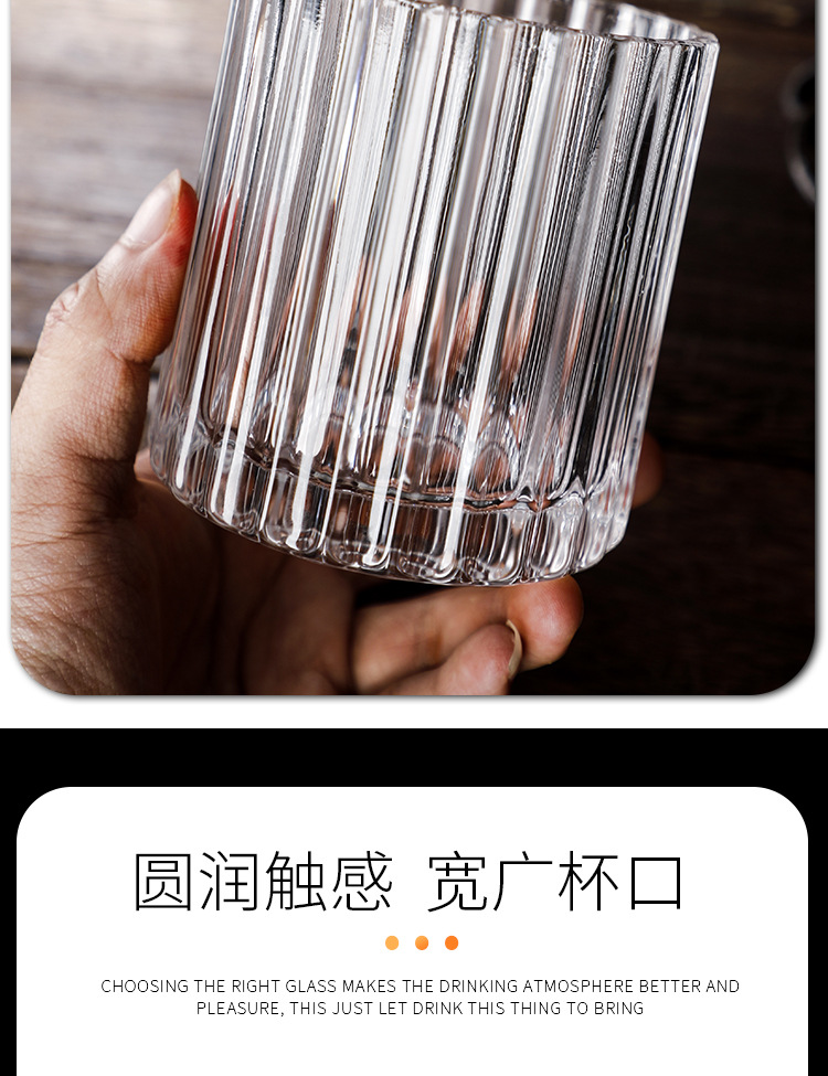 Vertical pattern wine glass Size: 9.3*8.5CM Material: ordinary glass Capacity: 350ml Packing boxes