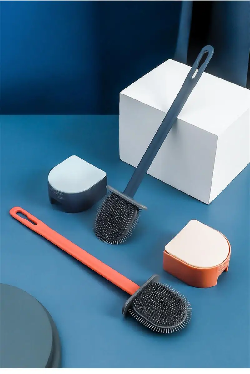 Durable Silicone Toilet Brush Soft Bristle Toilet Brush Holder Set Accessory Bathroom Cleaning Tool Rubber Toilet Cleaning Brush