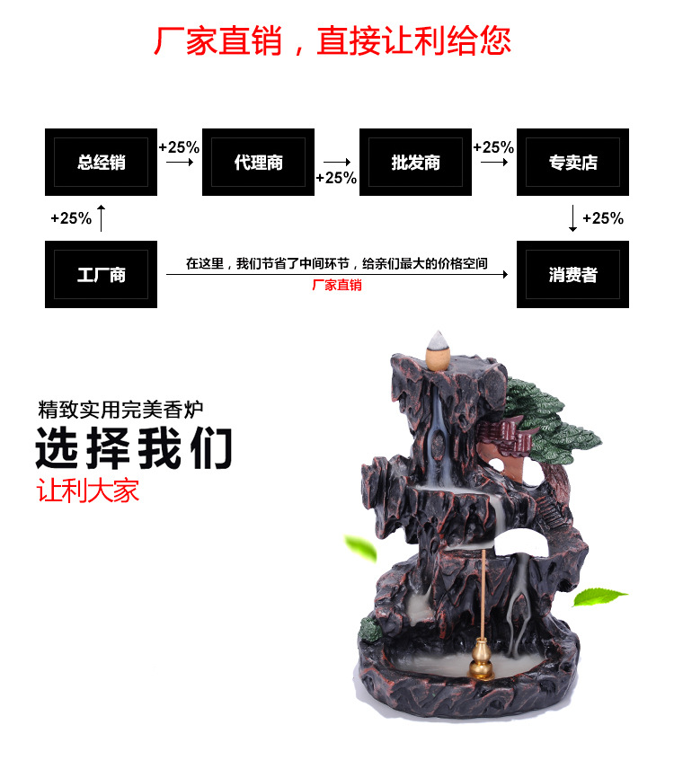 Mountain and flowing water creative decoration incense burner Size: 19.4*13.3CM Material: Ceramic Packing: safe packing