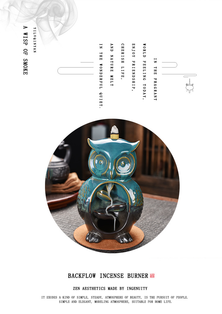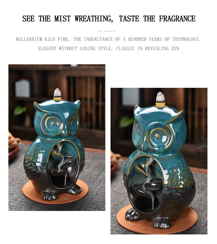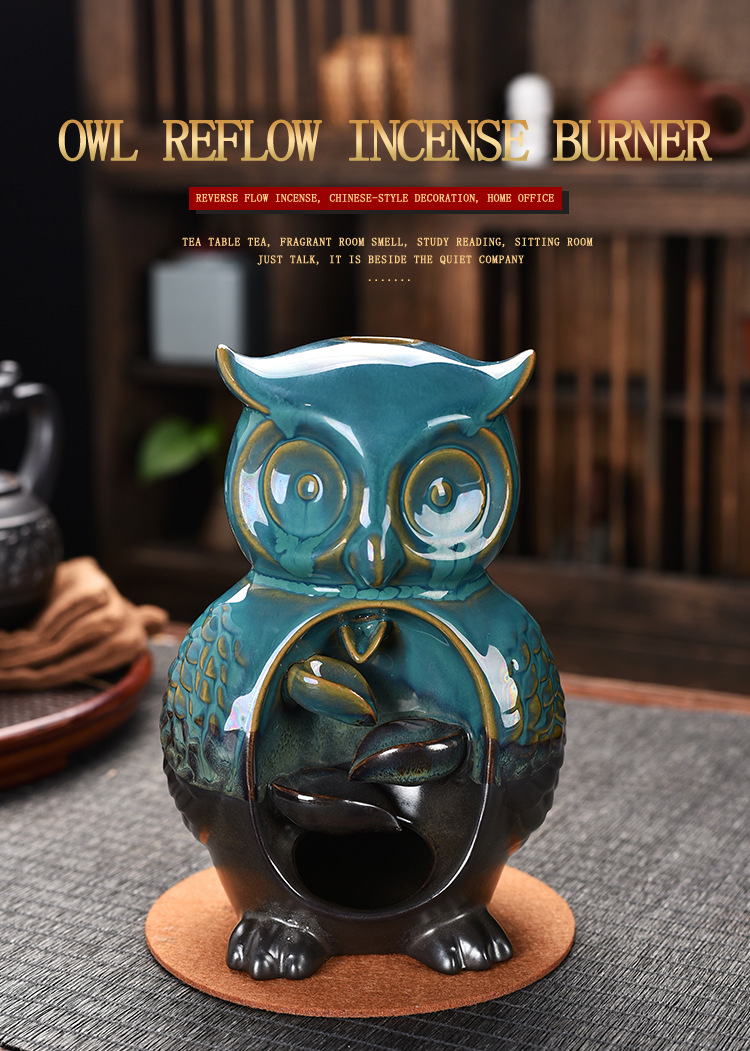Owl backflow incense burner creative ornaments Size: 16.3*11.1*11.4CM Material: Ceramic Packing boxes