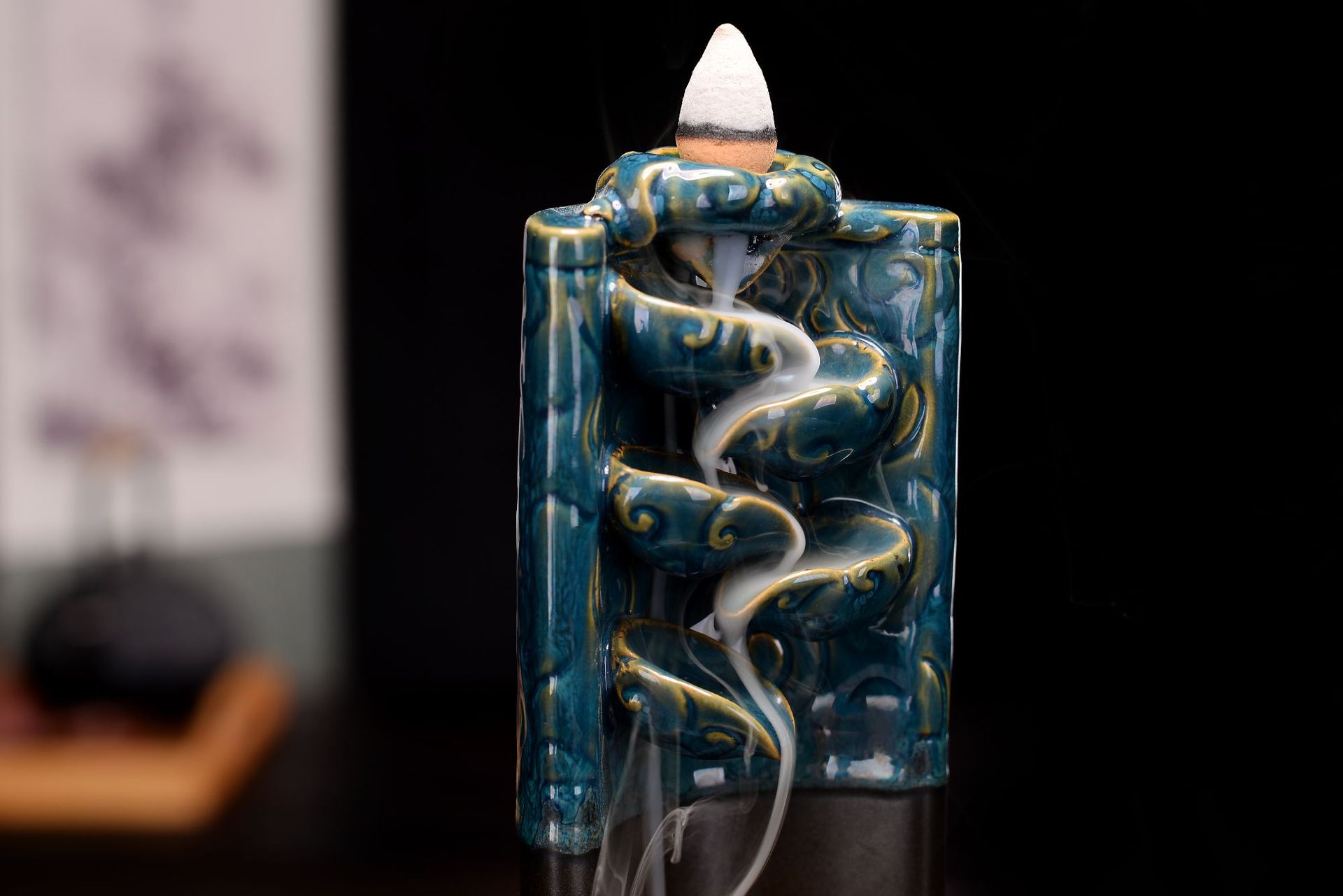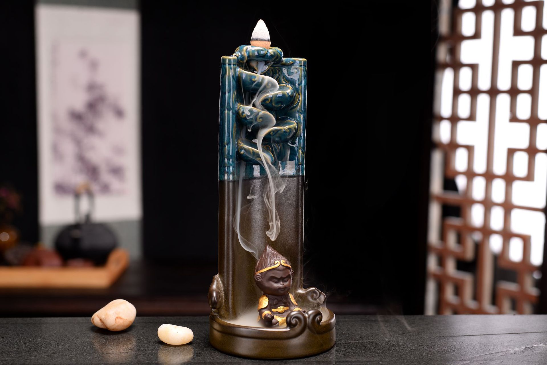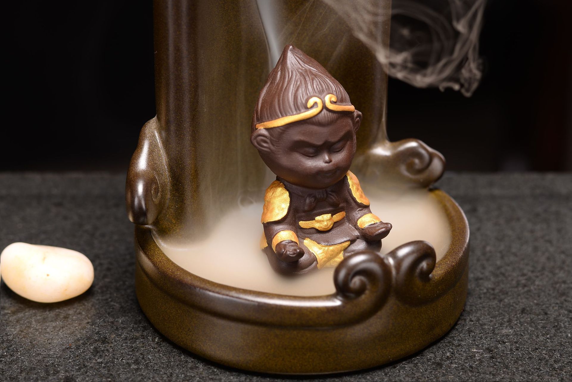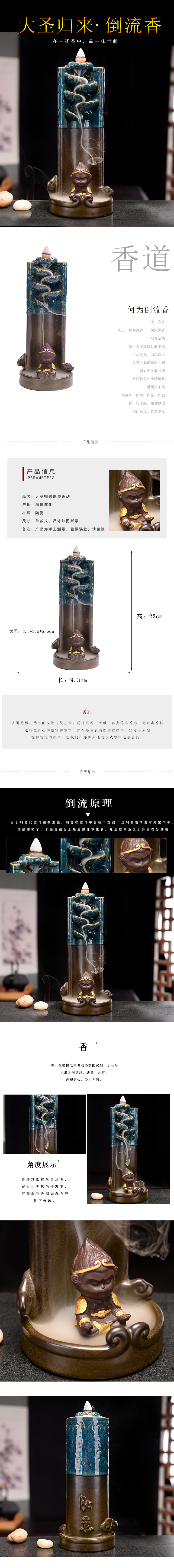 Ruyi golden hoop stick Monkey King backflow incense device Size: 22*9.3CM Material: Ceramic Packing: Kraft paper box