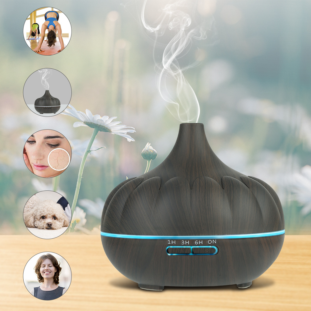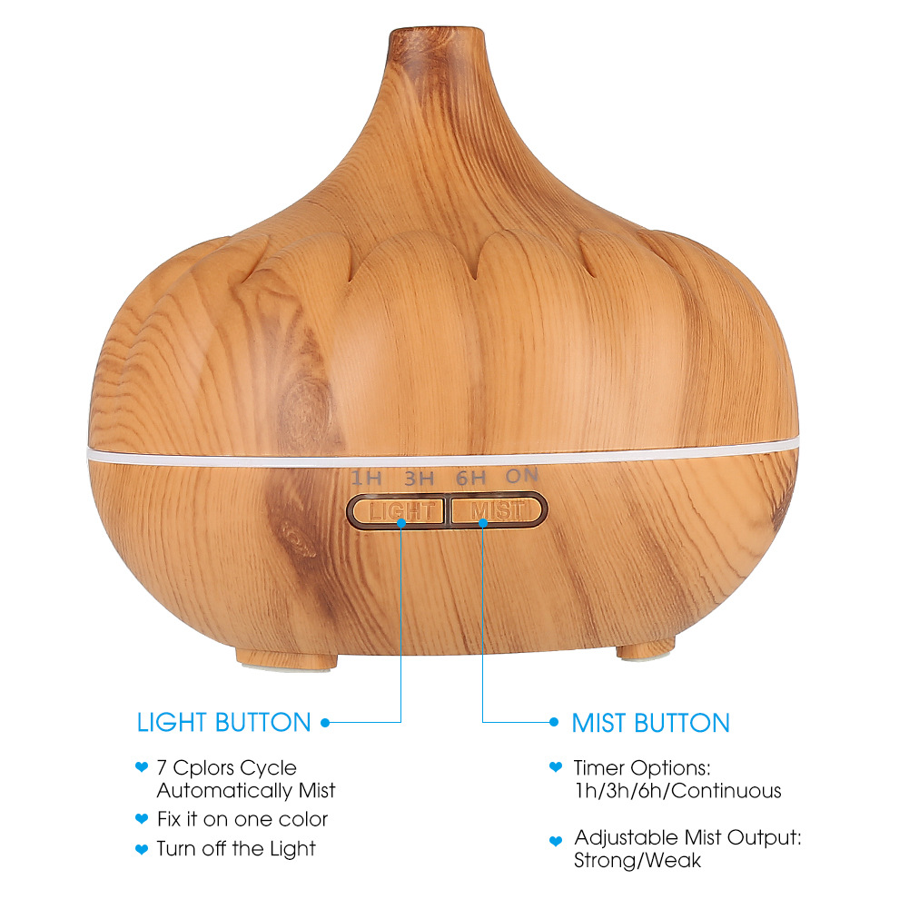 Pumpkin humidifier with wood grain aroma diffuser Size: 14.6*1.7CM Capacity: 500ml Power: 14w Material: Wooden Packing boxes Carton specifications: 530*360*327MM QTY: 12PCS