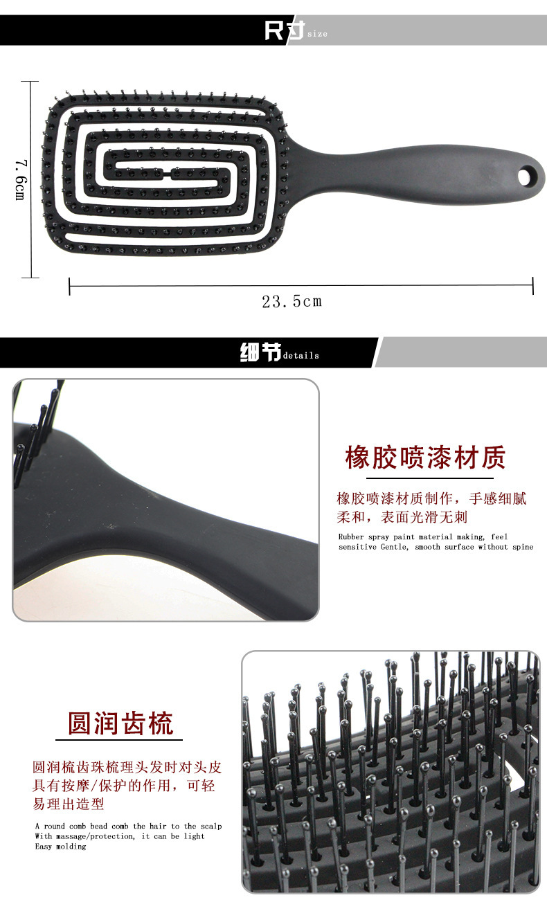 Beech lady comb airbag massage comb Size: 253*88mm Material: Beech+Natural Rubber+Nylon Packing: Box Box gauge: 47*42*54CM QTY: 120PCS
