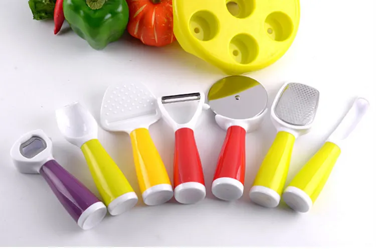 8PCS/Set Fruits Vegetables Tableware Kitchenware Heat Resistant Silicone Stainless Steel Dinner Kitchen Dining Bar Cooking Tools