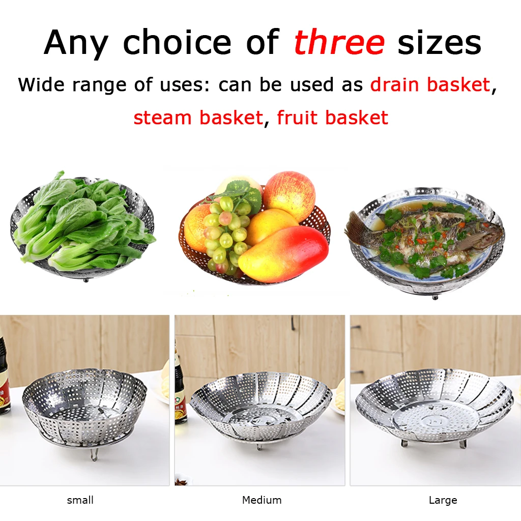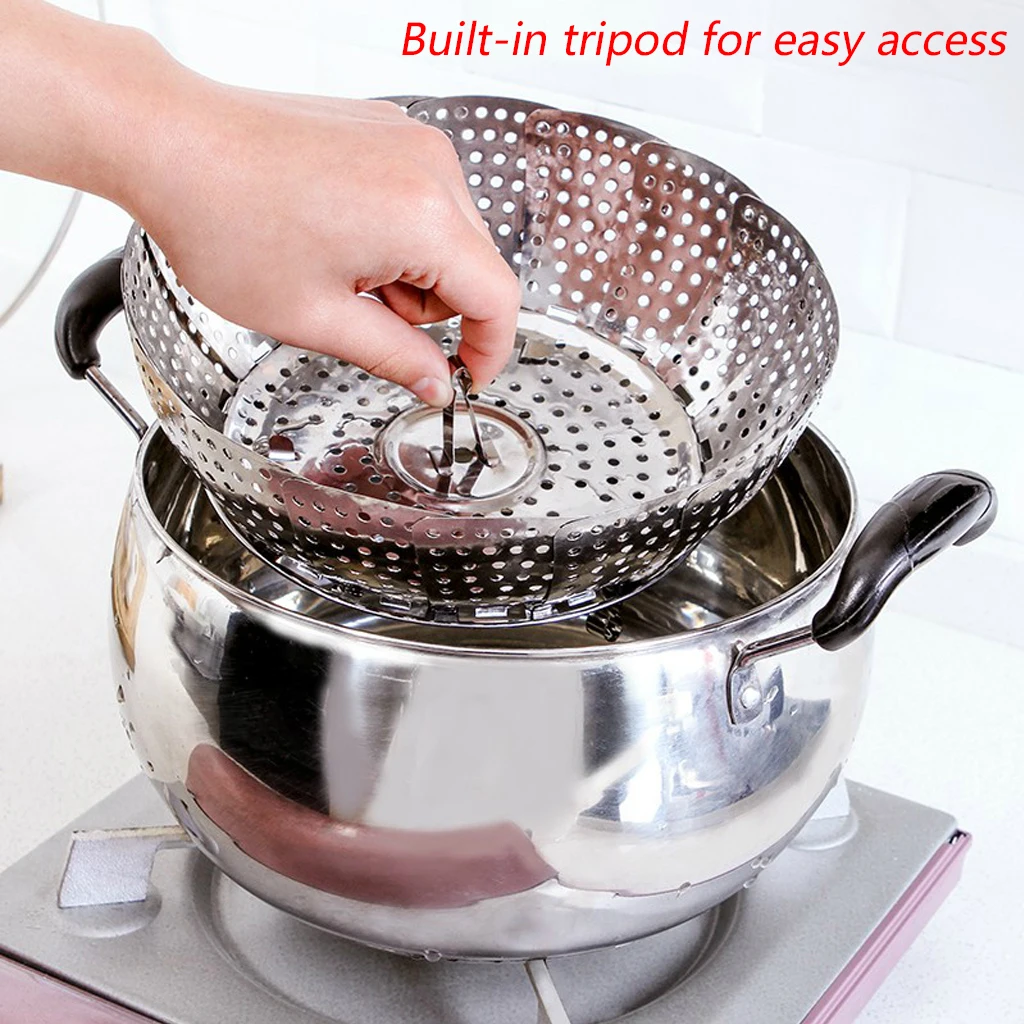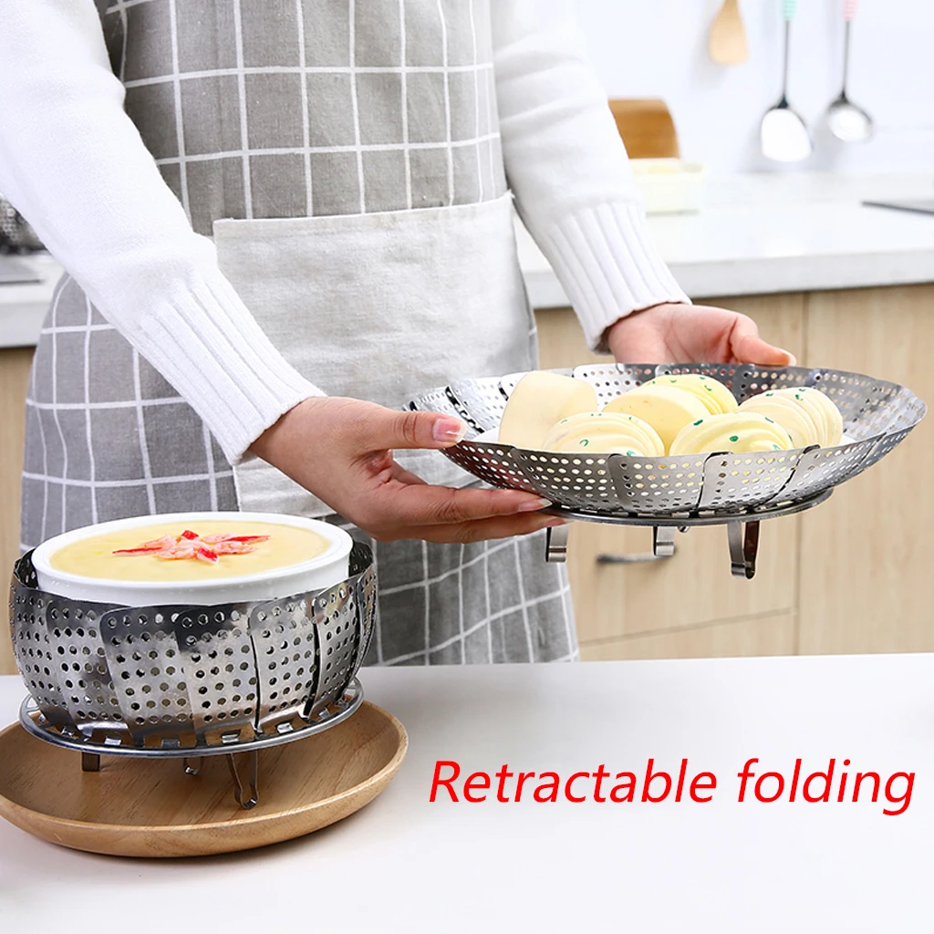 Stainless Steel Vegetable Steamer Basket Folding Steamer Insert for Veggie Fish Seafood Cooking Expandable Fit Various Size Pot