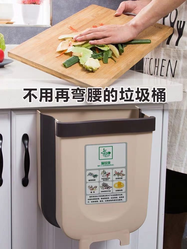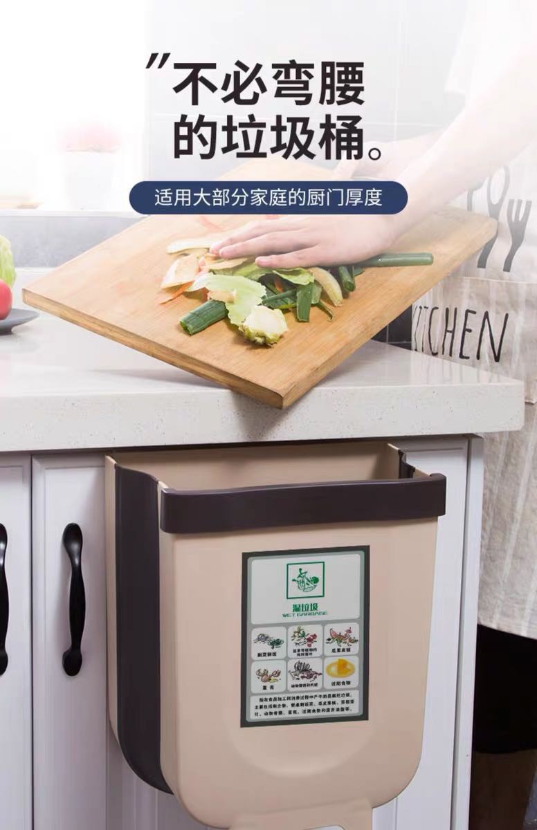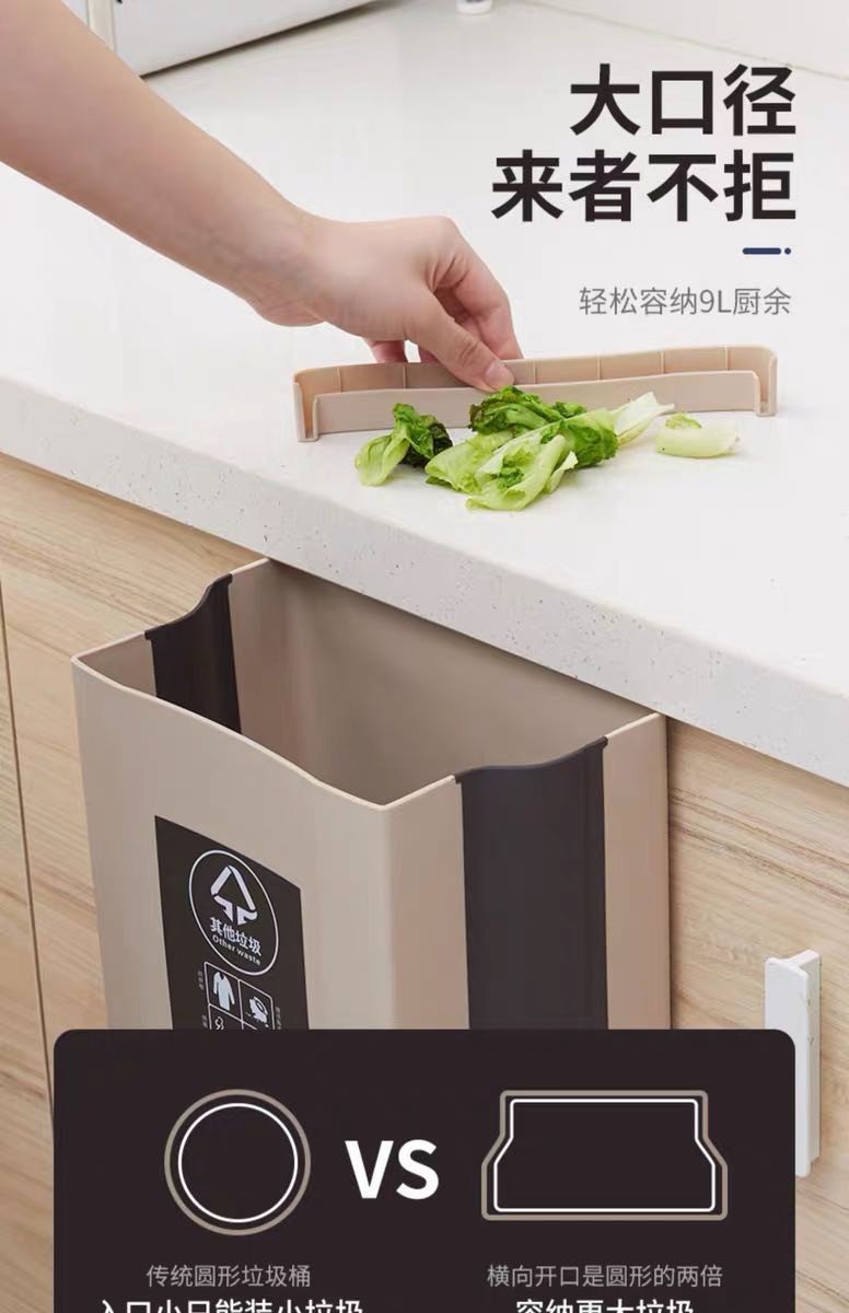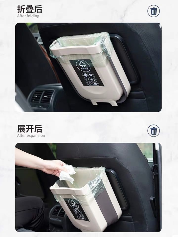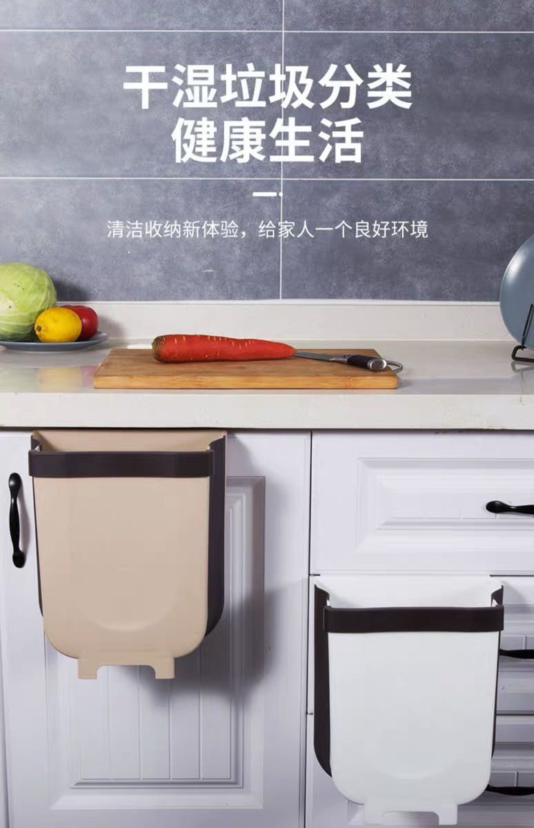 Folding trash can, size: 25x29x15cm, color: grayish white, blue, brown, material: PP+TPE, packing: OPP
