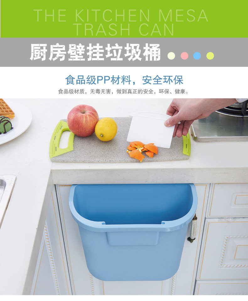 Household uncovered wall-mounted trash can, size: 30.5x25x26x15cm, color: White, blue, pink, green, material: PP, packing: OPP