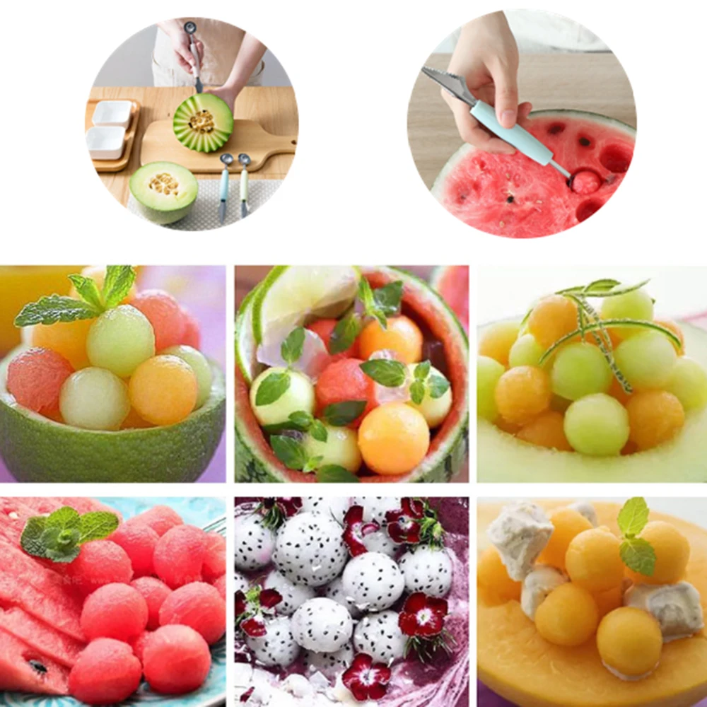 Best assistance for creation and beautiful DIY fruit plate Dual cut fruit tools, a corrugated side carved knife, do fancy cut, stainless steel side dig the ball, a ball can dig fruit, easy to eat fruit.