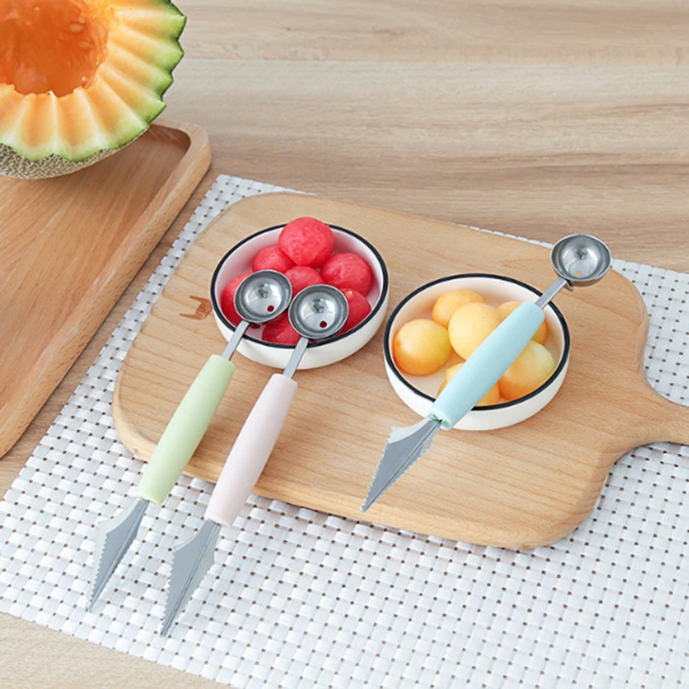 2In1 Ice Cream Ball Spoon DIY Assortment Fruit Digging Spoons Grapefruit Scoop Kitchen Tool Watermelon Fruit Carving Gouge Knife