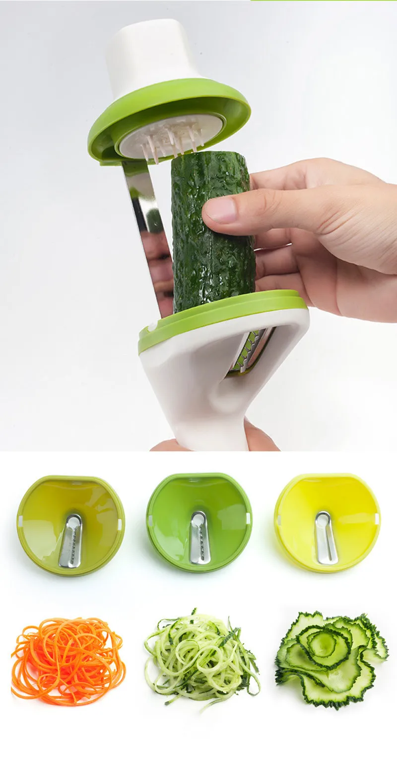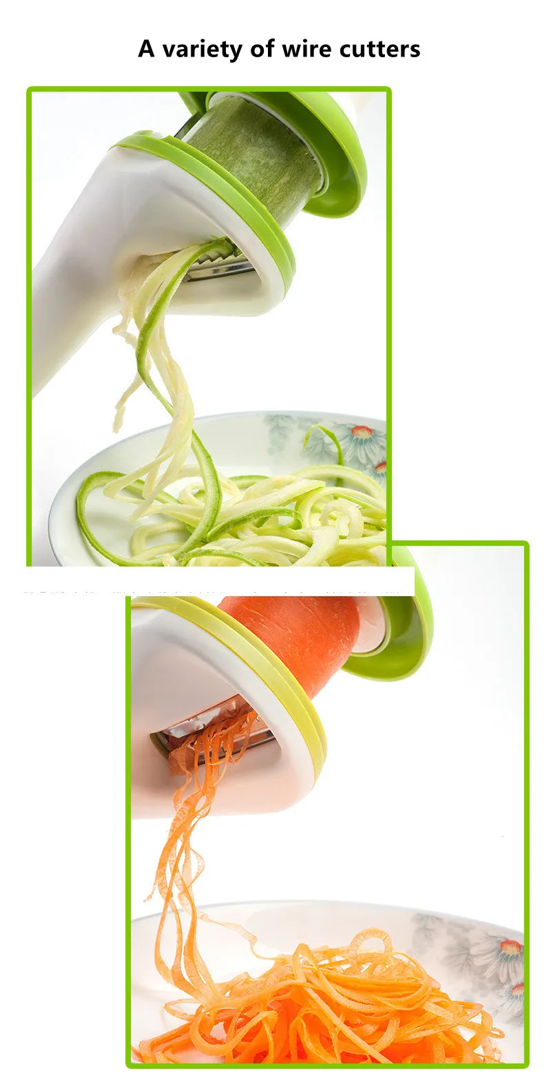 Funnel-type Grater Kitchen Three-purpose Shredder Spiral Vegetable Cutting and Rotating Filament Cutter Kitchen Gadgets.