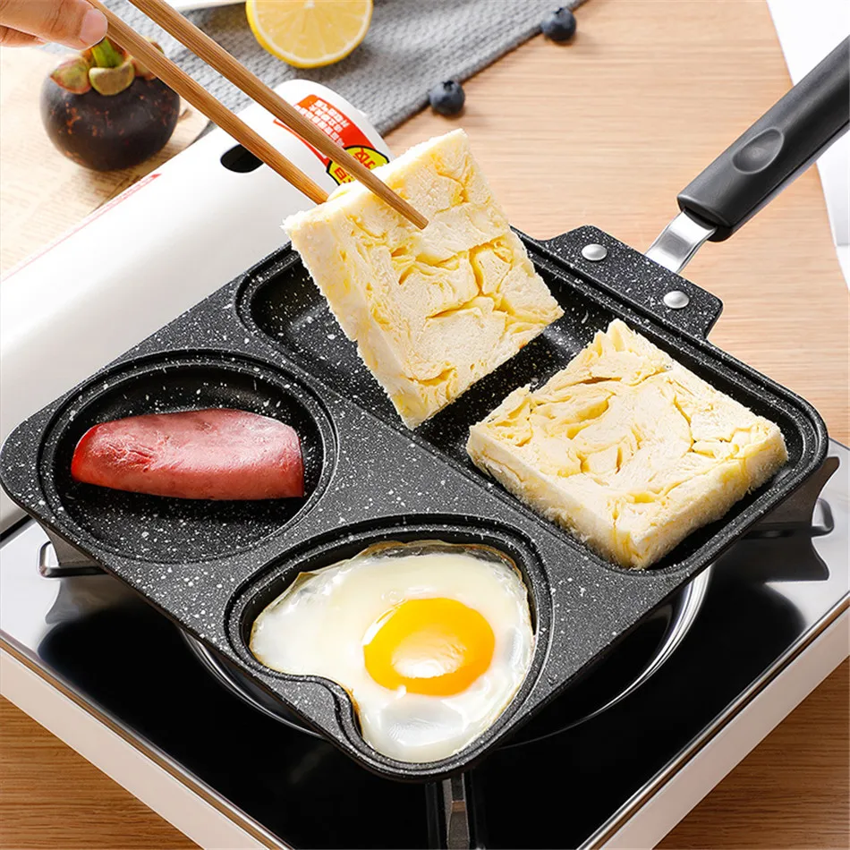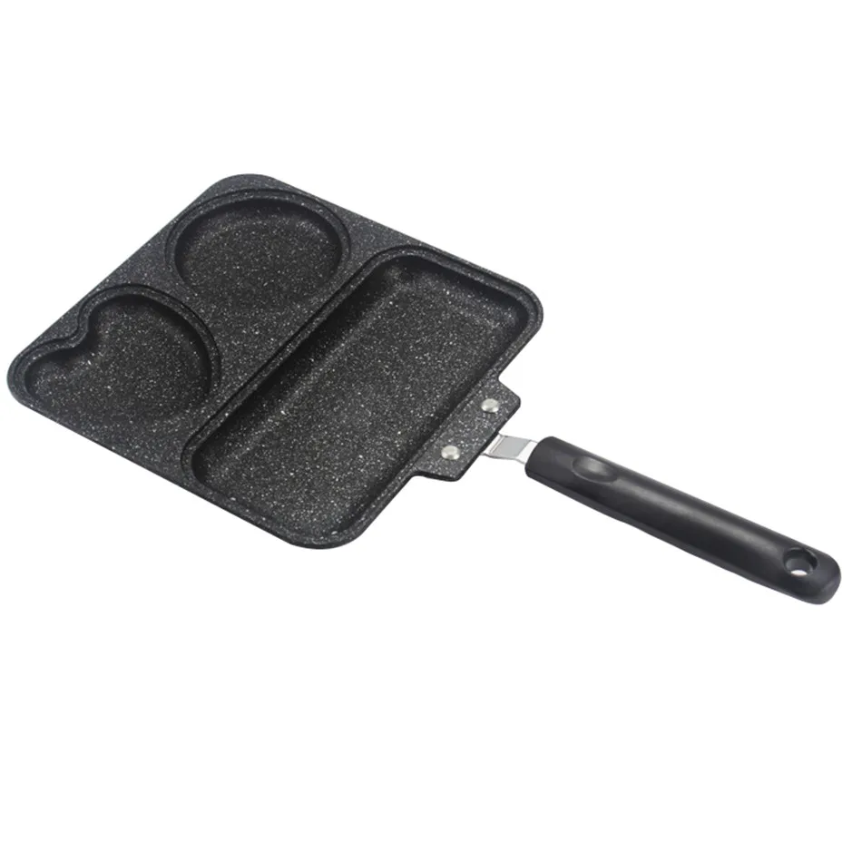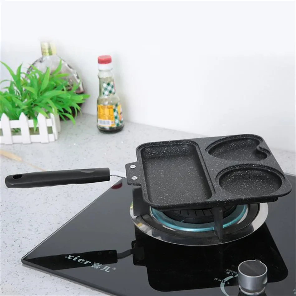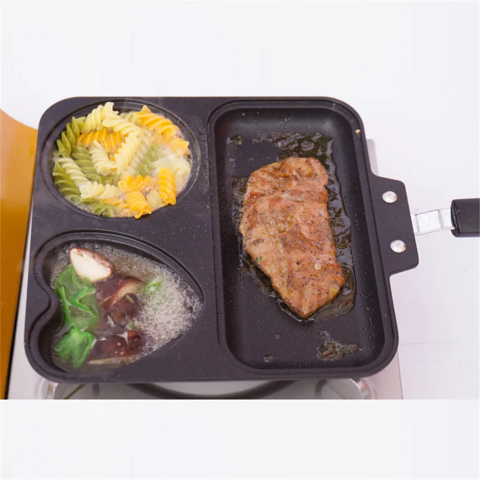 4. 3 in 1 function frying pan, can be used to fry egg, sausage and beef steak at the same time.