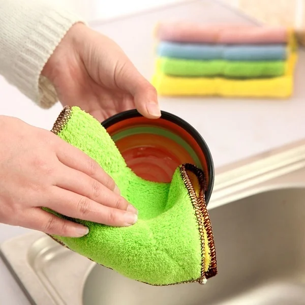 Bath Towel Kitchen Cleaning Wiping Microfiber Cloth Fiber Kitchen Clean Dish Double Sided Suction Water Thick Cleaning Towel