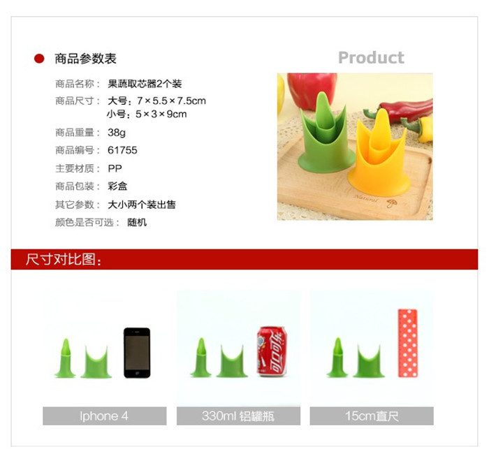 Kitchen fruit and vegetable corer (size: 2 sets) 1.