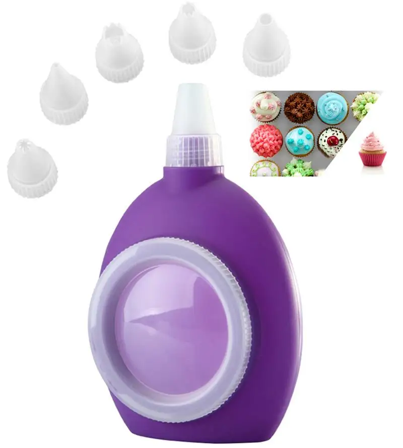 Baking Decorating Tip Sets Bakery Silicone Cake Muffin Macaroon Piping Icing Baking Tool Pot 6 Nozzles Set Kitchen Bakeware Tool