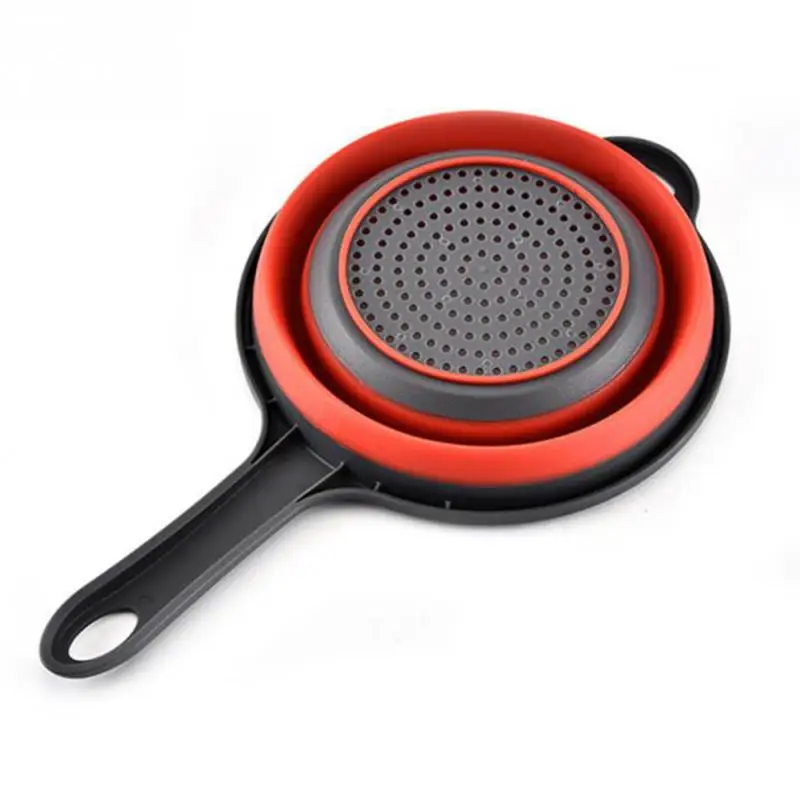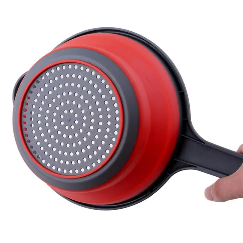 1PC Folding Silicone Plastic Colander Drain Basket Fruit Vegetable Washing Strainer Collapsible Drainer With Handle