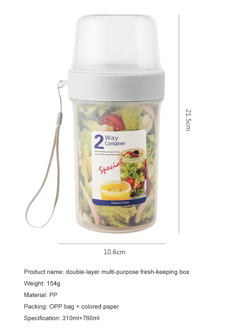 Adopting a double-layered fresh-keeping design, dry and fresh can be dual-purpose, layered storage, the upper body and the lower body are separated, not easy to odor, and full preservation.