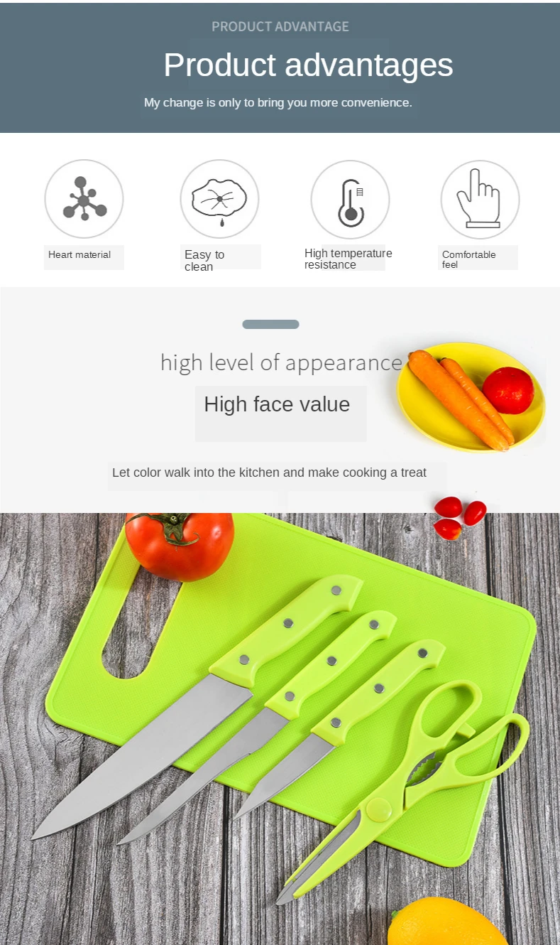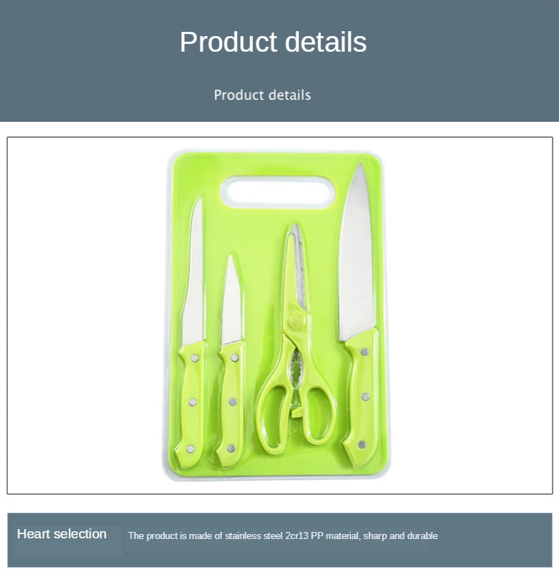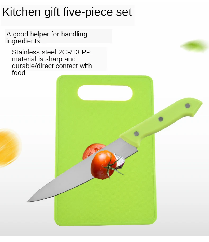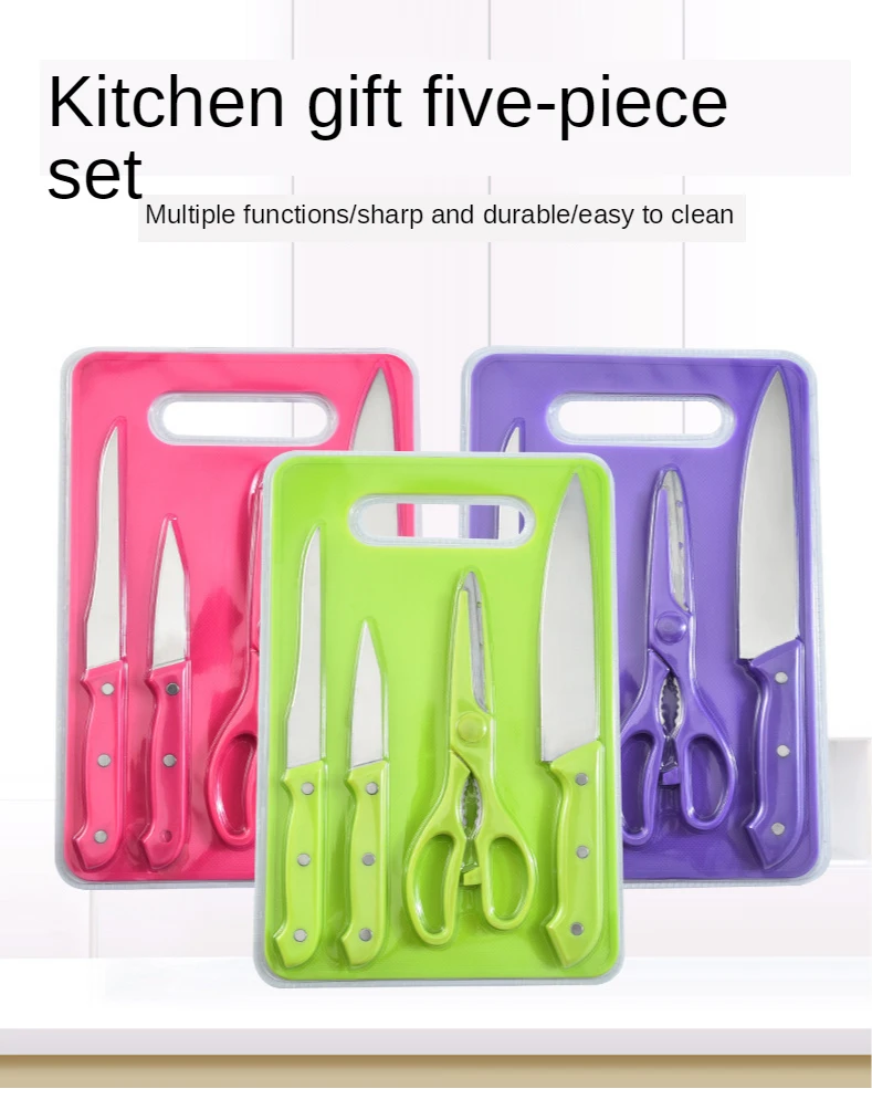 Household Fruit Knife Kitchen Knife Set 5 Piece Bread Knife Cutting Board Stainless Steel Chef Knife Chopping Board Kitchen Tools