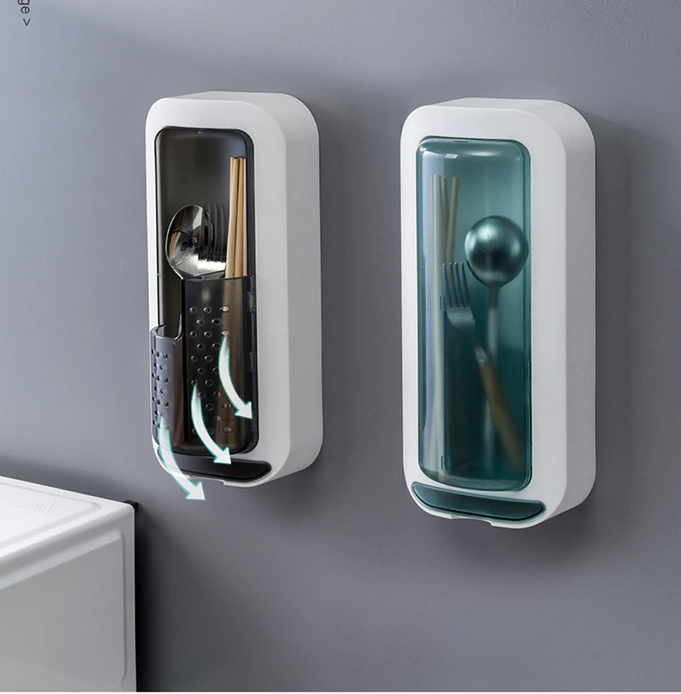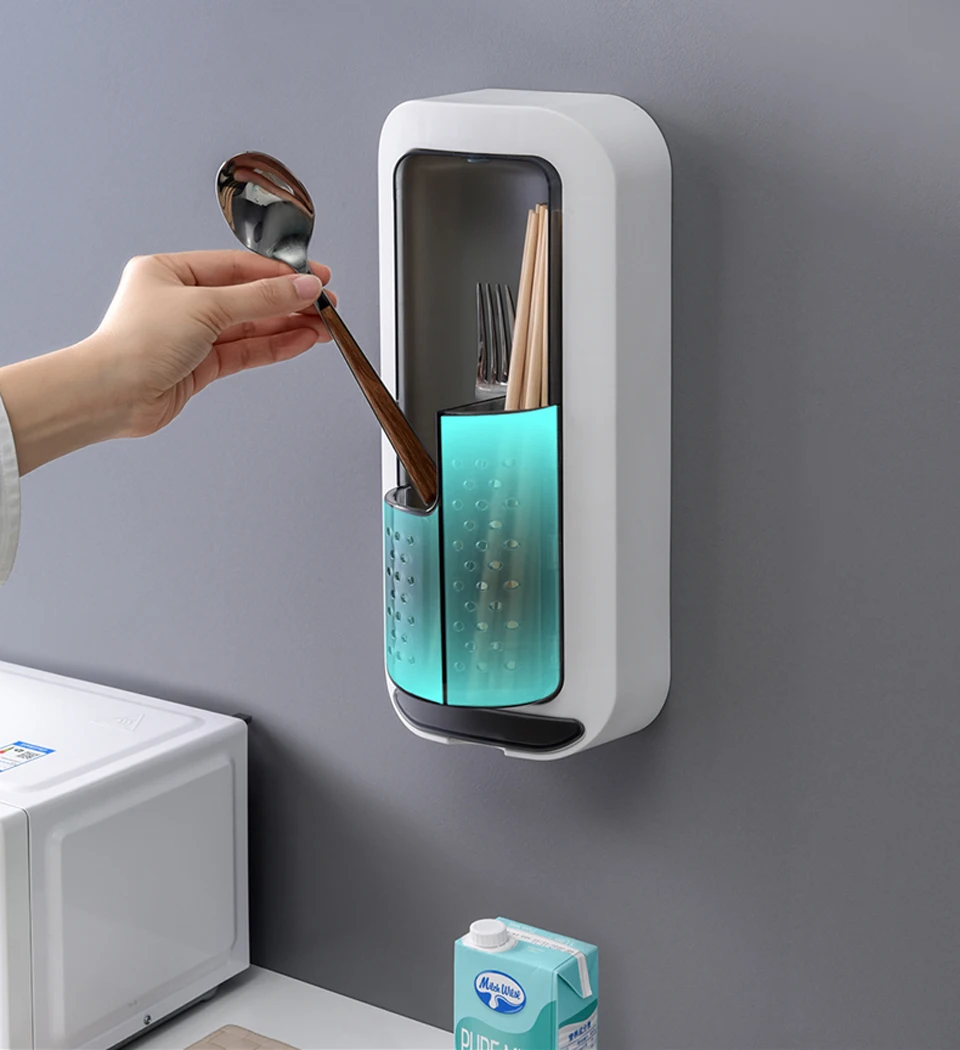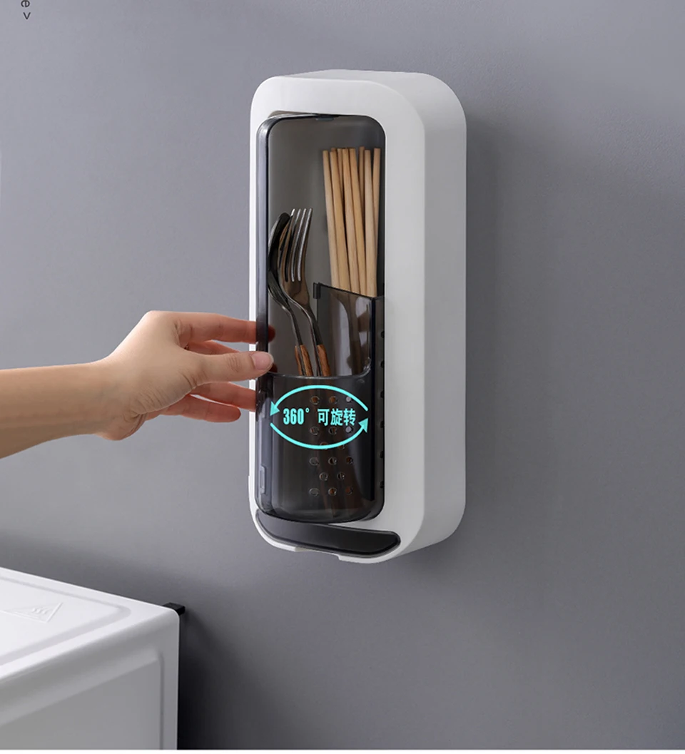 Kitchen Chopstick Holder Wall-mounted Racks Household Spoon Chopstick Cage Rotating Creative Drain Kitchen Tableware Storage Box