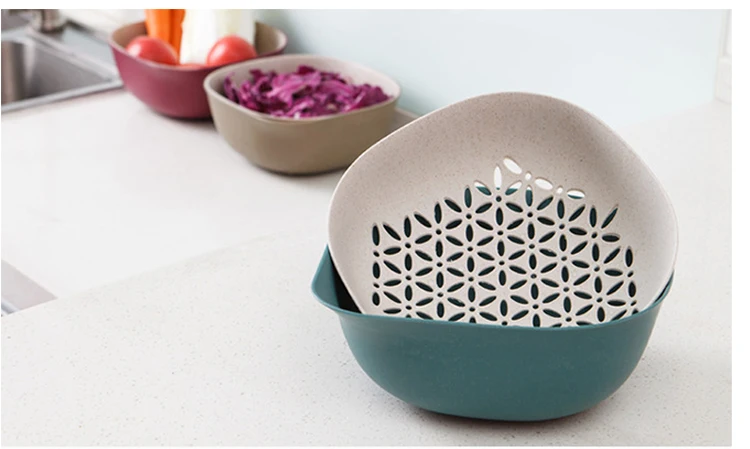 Kitchen Double Drain Basket Washing Storage Basket Strainers Bowl Drainer Vegetable And Fruit Drain Basin Cleaning Colander Tool