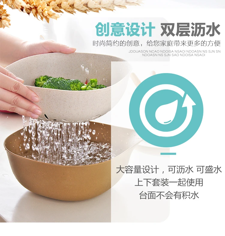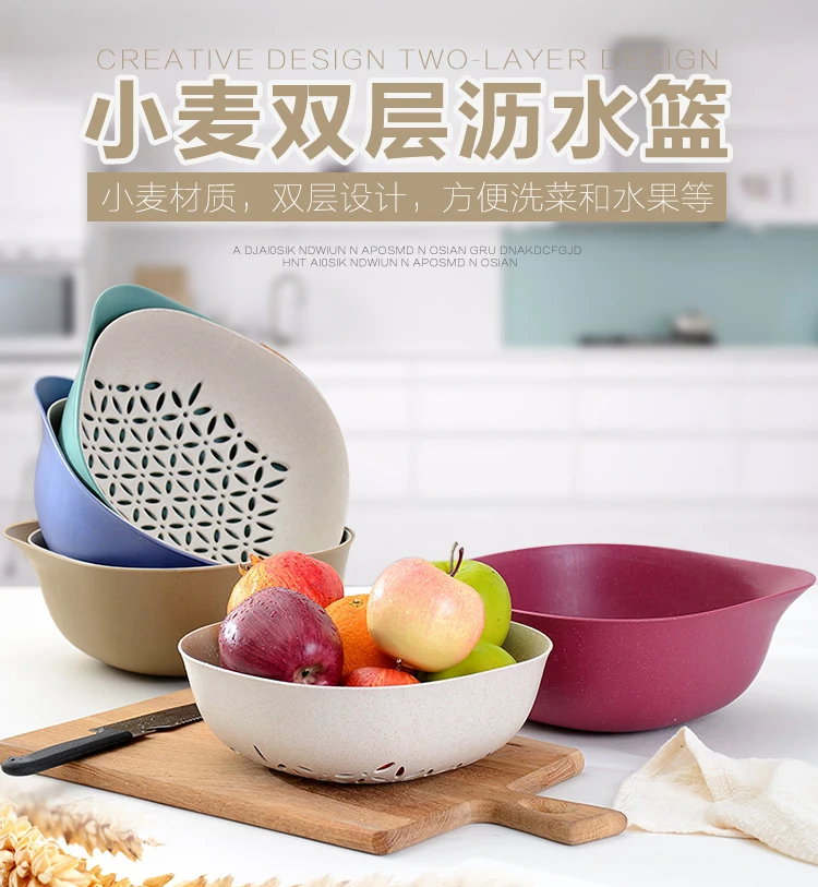 Kitchen Double Drain Basket Washing Storage Basket Strainers Bowls Drainer Vegetable And Fruit Drain Basin Cleaning Colander Tool