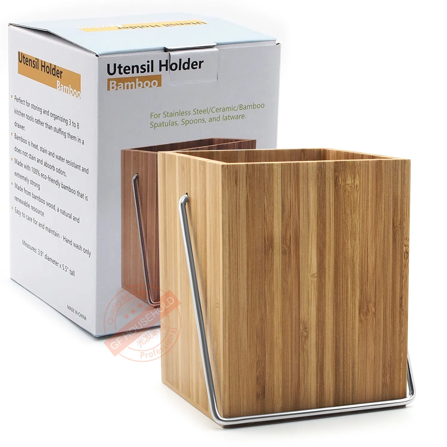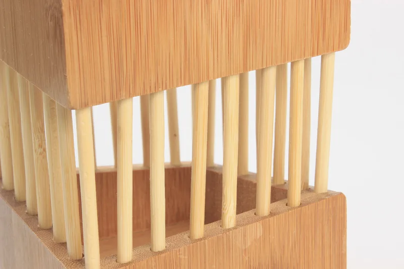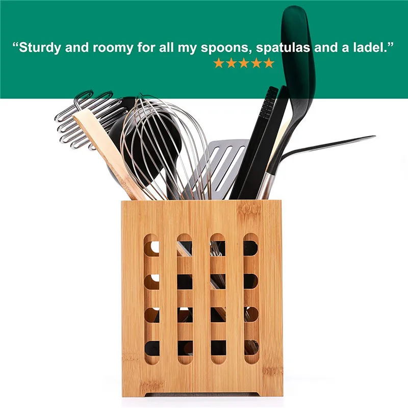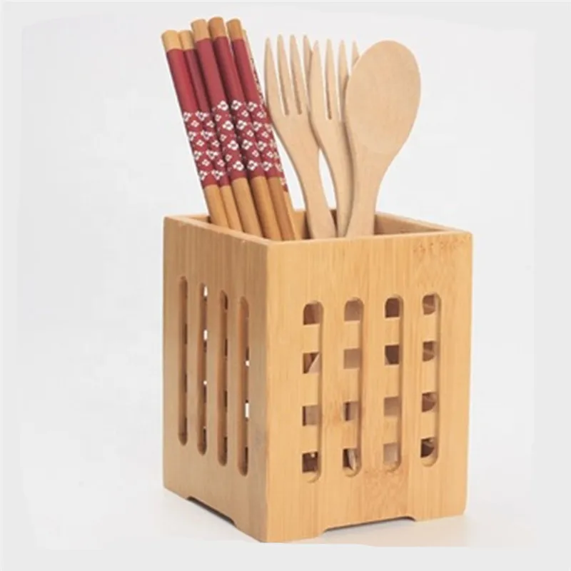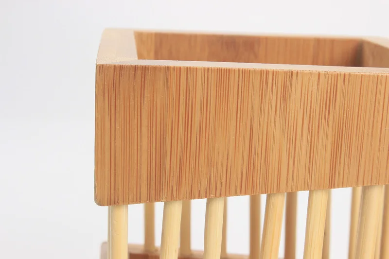 This product is made of bamboo material, environmentally friendly and healthy. The bamboo tube has a lifting ring on both sides. It is easy to carry. The cutlery can accommodate all kinds of commonly used small tableware, such as kitchen utensils, chopsticks, etc.