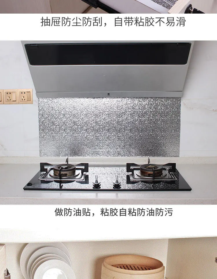 Kitchen Wall Stove Aluminum Foil Oil-proof Stickers Anti-fouling High-temperature Self-adhesive Croppable Wallpaper Wall Sticker