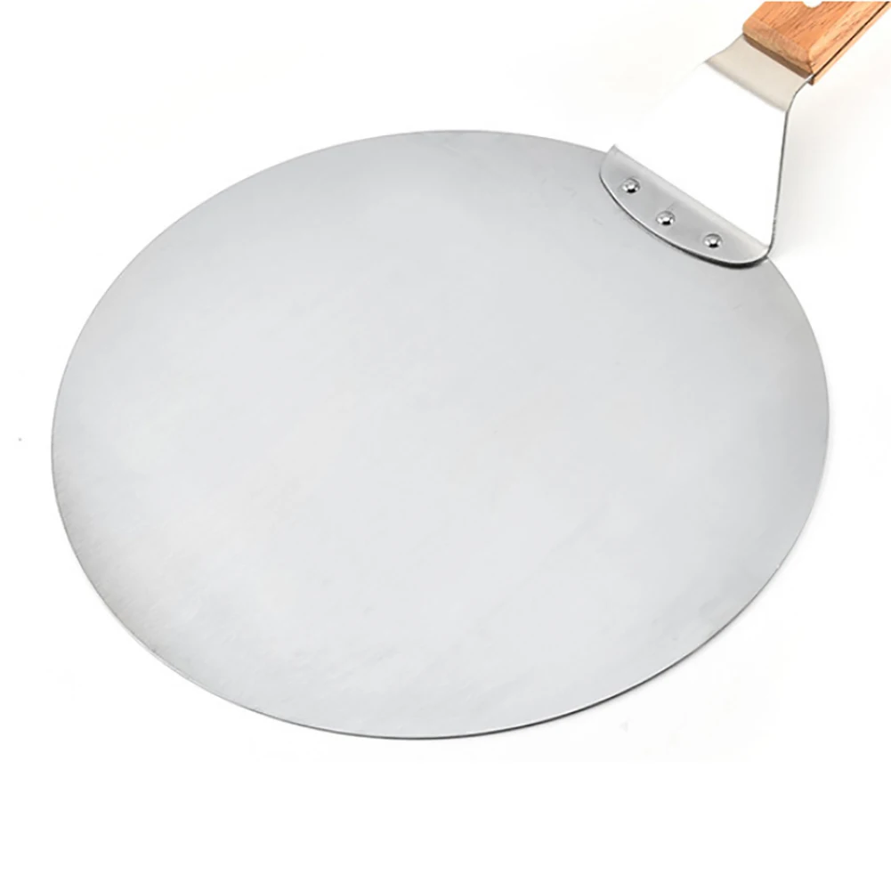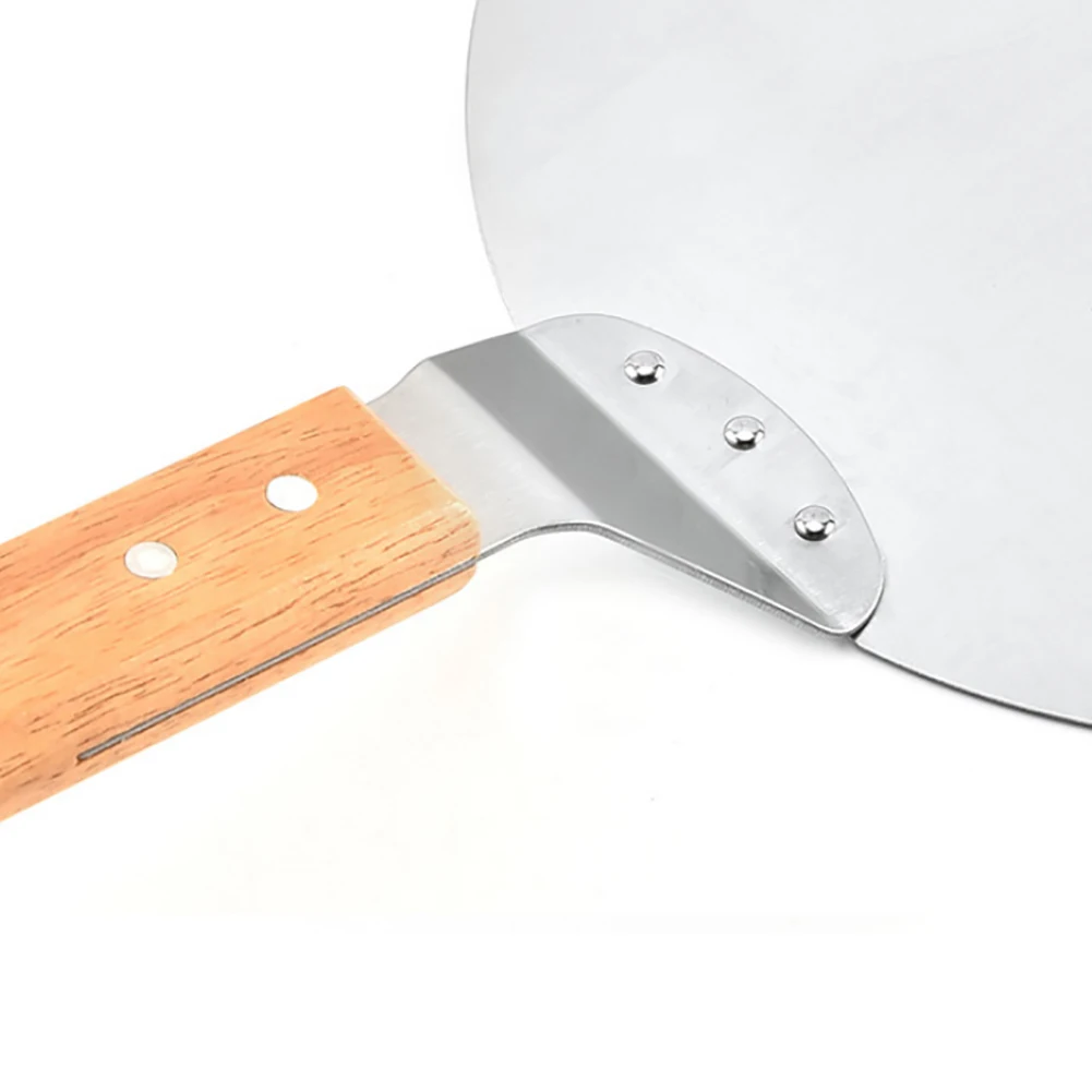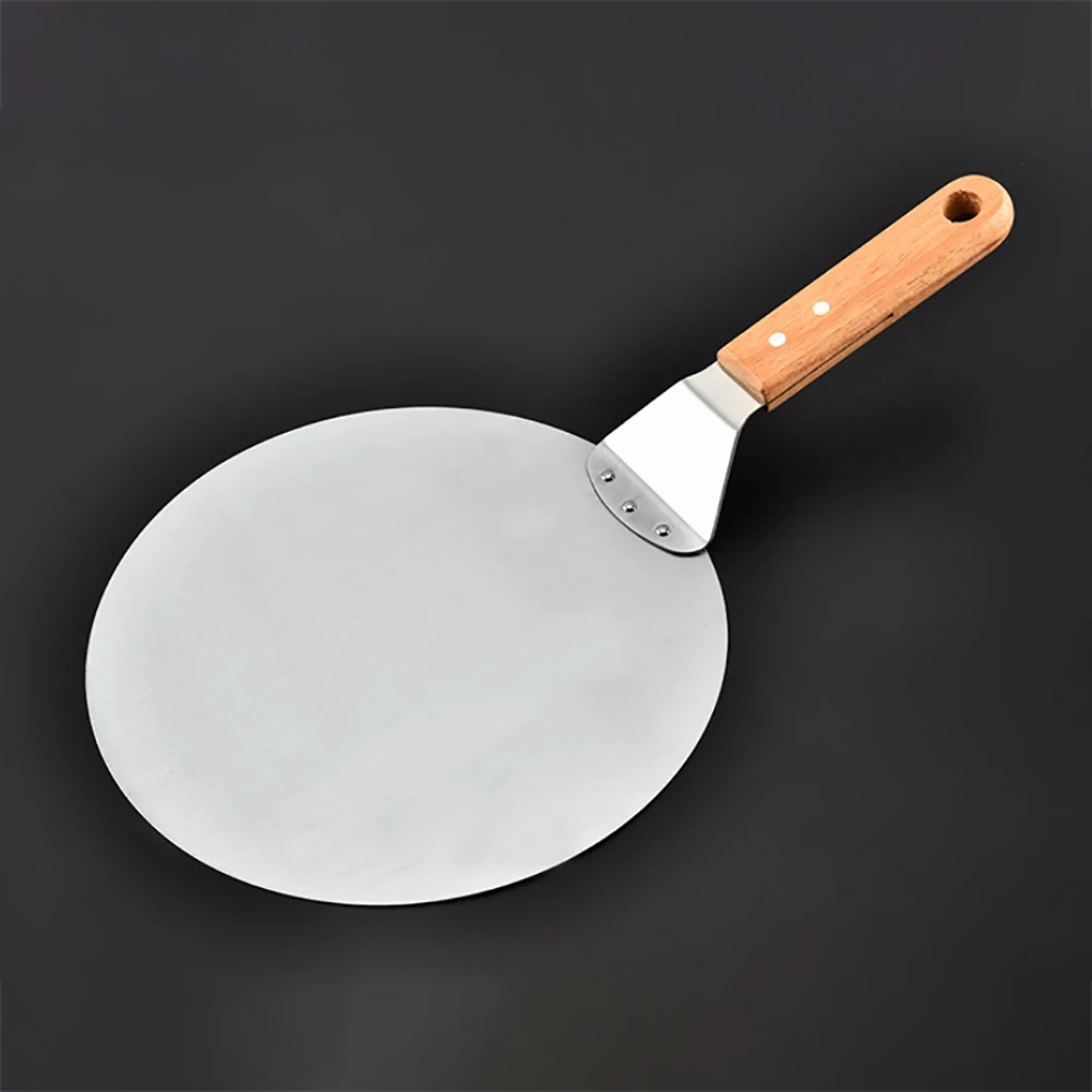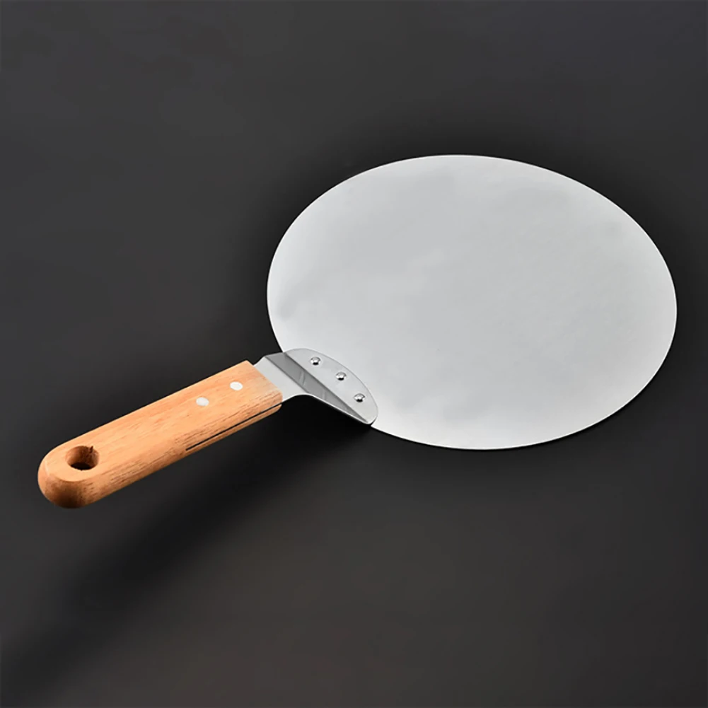 Round Wooden Handle Stainless Steel Cake Pizza Shovel Home Kitchen Baking Tool