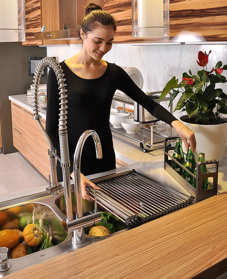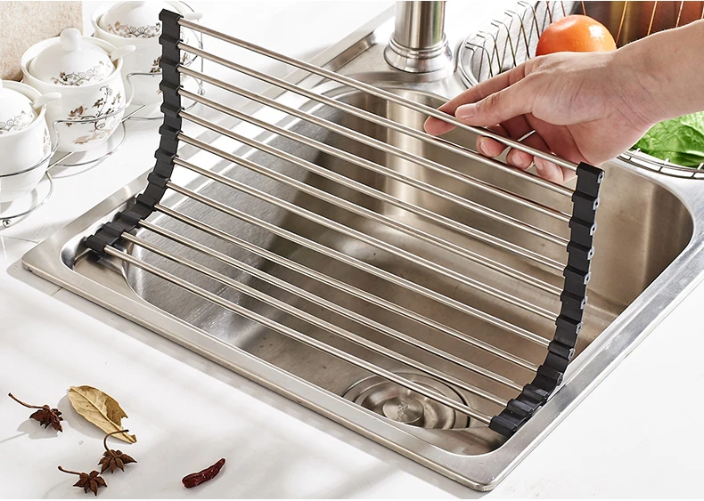Multifunctional Sink Storage Dish Drying Rack Holder Fruit Vegetable Drainer Insulation Tool Storage Foldable kitchen tools