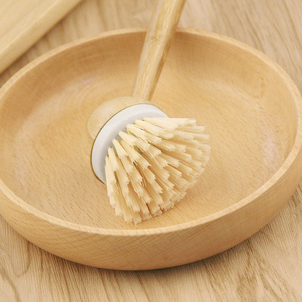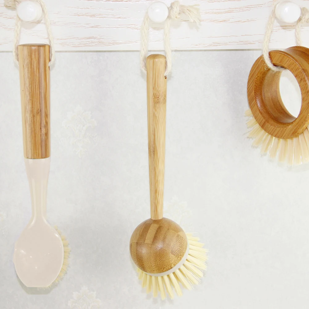 Pot Dish Bowl Brush Washing Cleaning Brush With Wooden Bamboo Long Handle Cleaning Tool Kitchen Pot Hanging Brush #EW