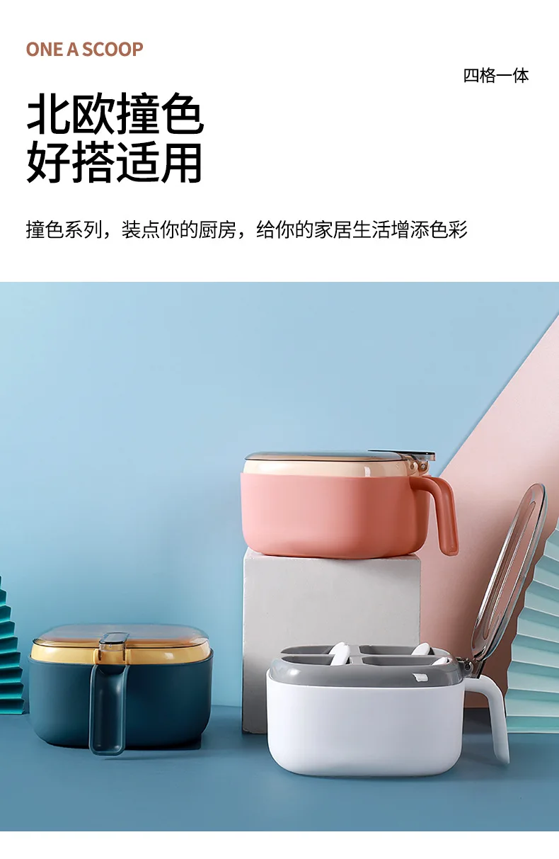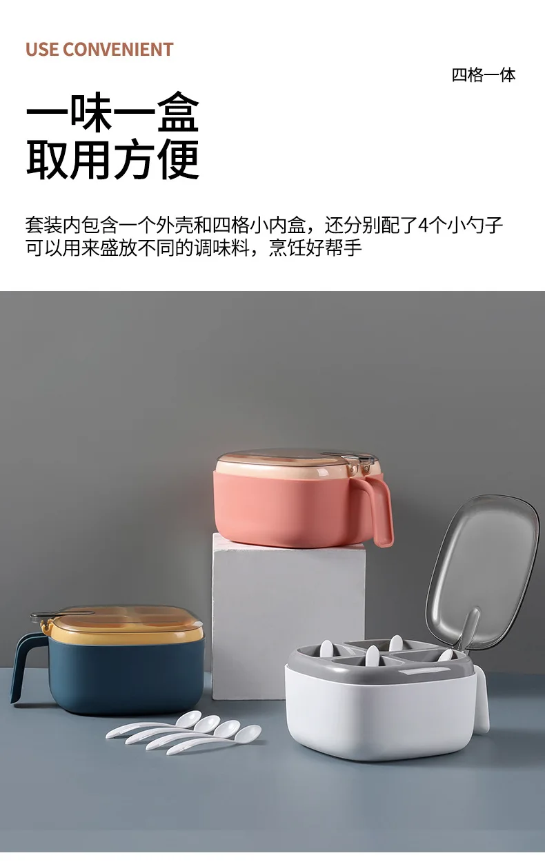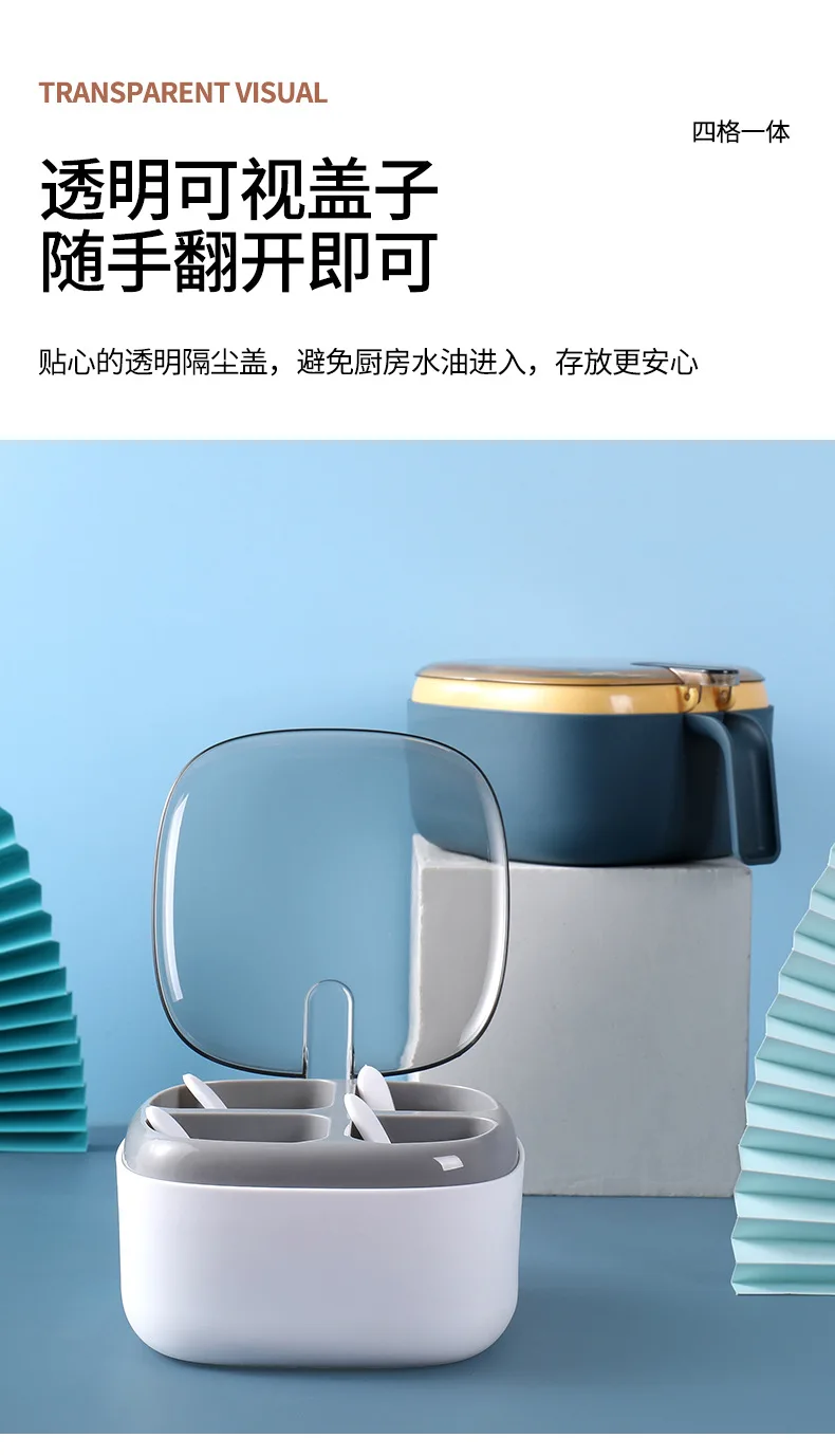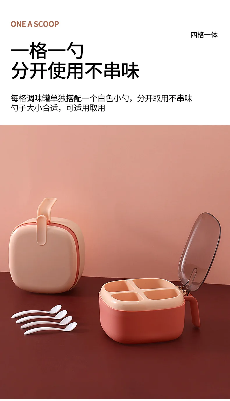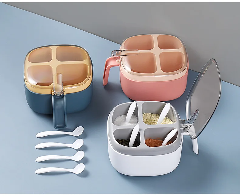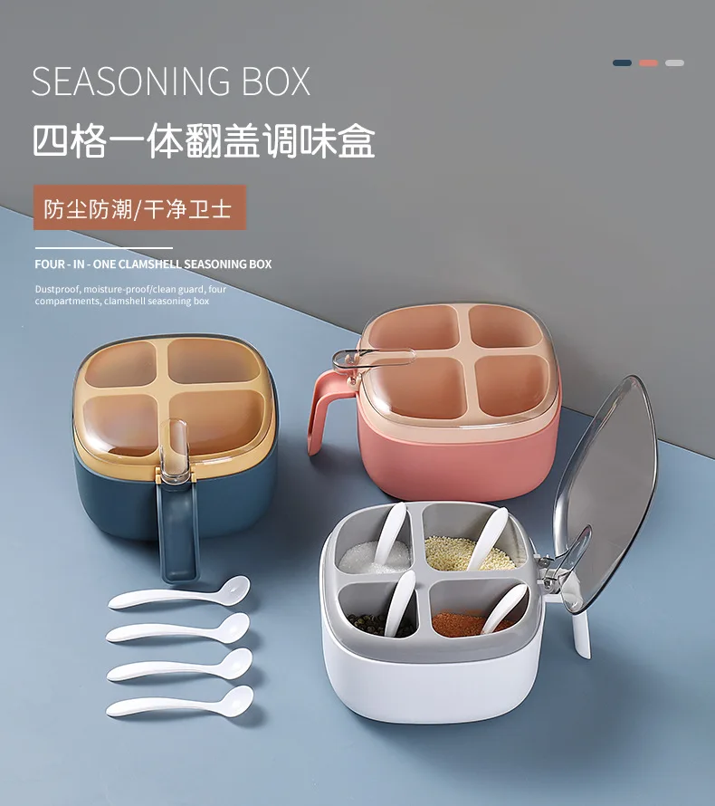 Seasoning Box Set Household Kitchen Utensils Four-in-one Salt, Sugar and Monosodium Glutamate Multi-cell Seasoning Jar with Lid