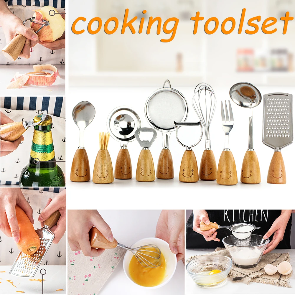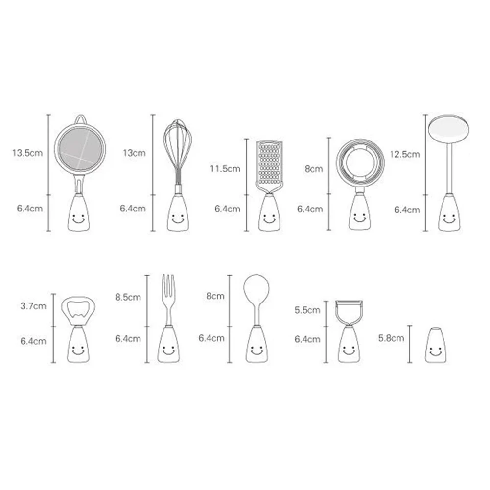 1, It contains fork, spoon, opener, egg beater, funnel, grater, toothpick holder, soup spoon, egg separator, peeler, kitchen gadgets.