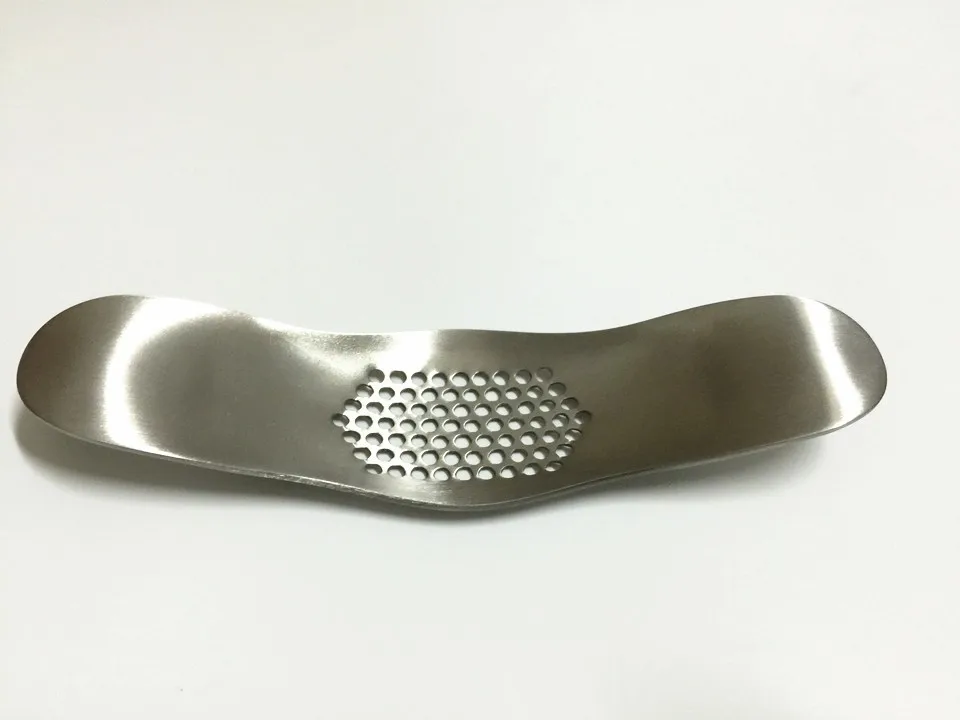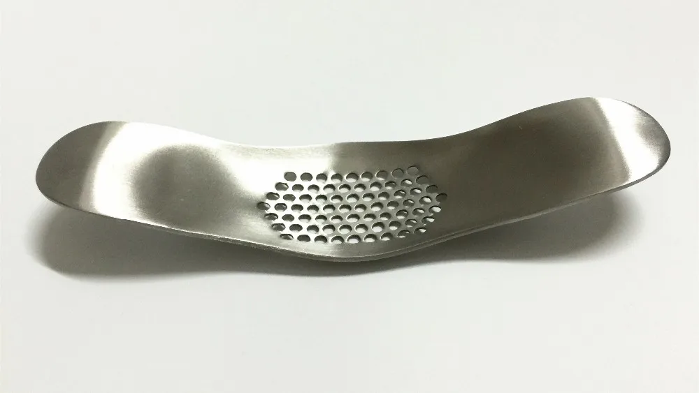 This Galric Presser Easy to use and easy to clean, the modern stainless-steel garlic rocker turns a messy task into effortless mincing. Place garlic cloves under perforations, press down alternately on the ends to create a rocking motion. Crushed garlic pushes through perforations to easily spoon into soup, marinades or sauces or onto roasts or bread. This garlic mincer also eliminates garlic odors from hands. Rinse with dishwashing detergent and rub gently onto hands to remove every trace of garlic, fish or onion odors. Stainless-steel binds with sulfuric ingredients to lift odors. This garlic press is quick to use, convenient for cleanup and compact to store. Dishwasher-safe.