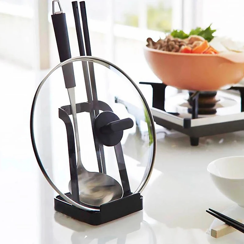 Kitchen Pot Cover Rack Organizer Pot Lid Shelf Cooking Storage Spoon Spatula Ladle Holder Cookbook Stand Home Accessory.